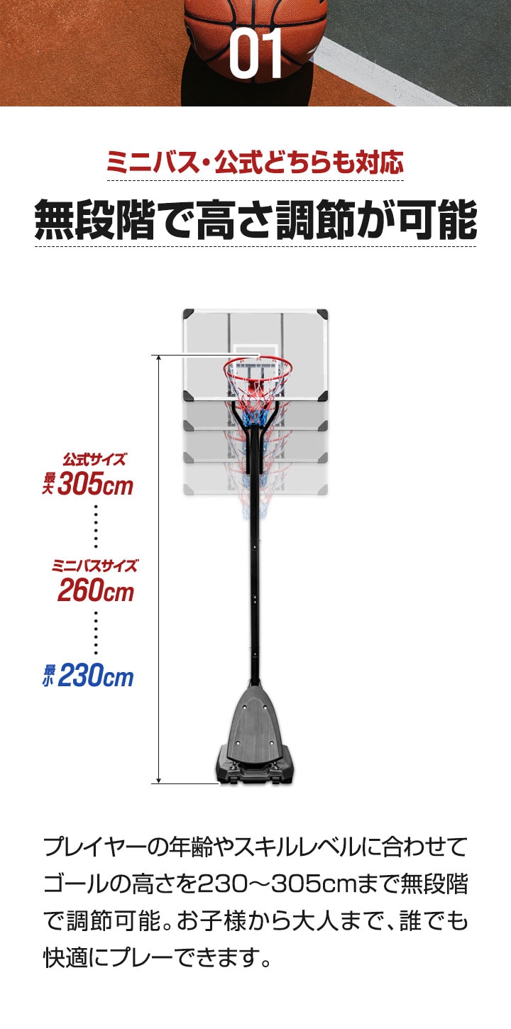 | リングまでの高さ: (約)230-305cm ※無段階調節 |