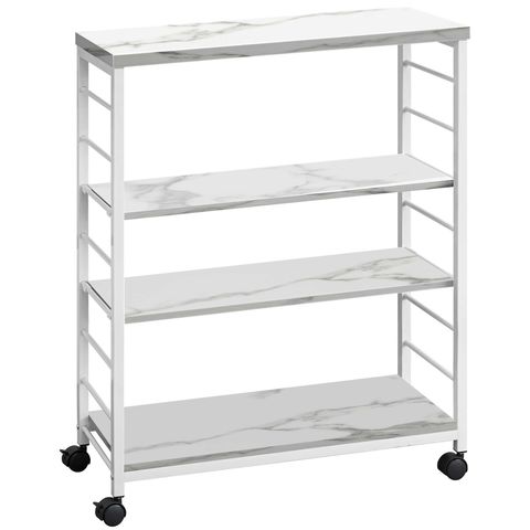 キッチンワゴン キャスター付き 天板付き (大理石柄/ホワイト) スリム 高さ調節 4段 幅70cm×奥行30cm 木目調 隙間収納 キッチンラック キッチン収納 ラック ワゴン ストッカー ワゴンラック マルチワゴン サイドラック 収納 キッチン 台所 おしゃれ 送料無料