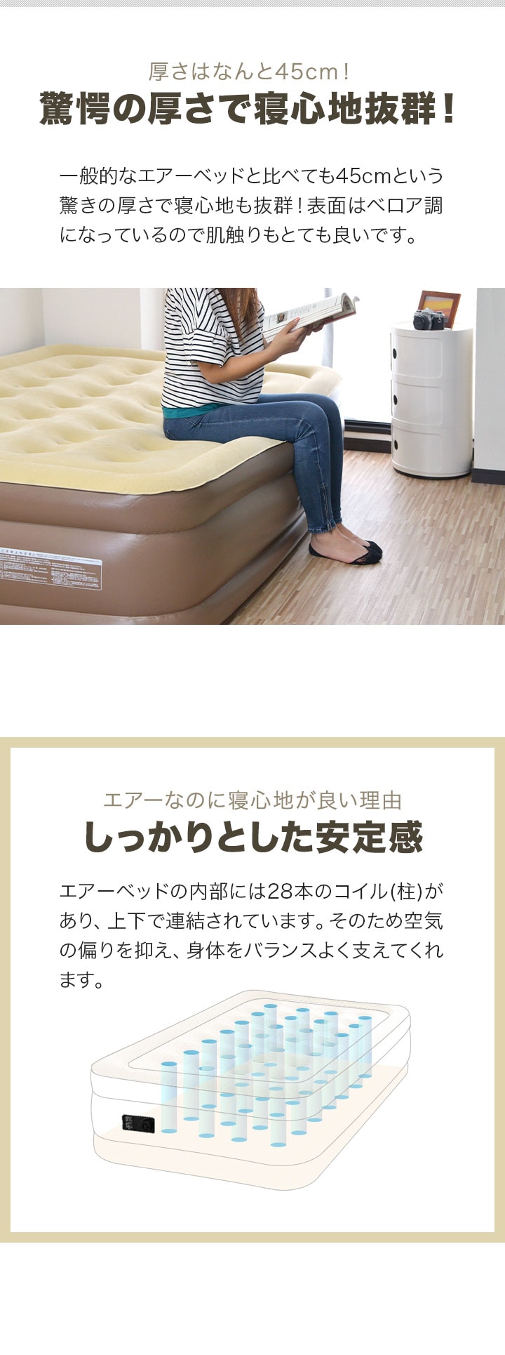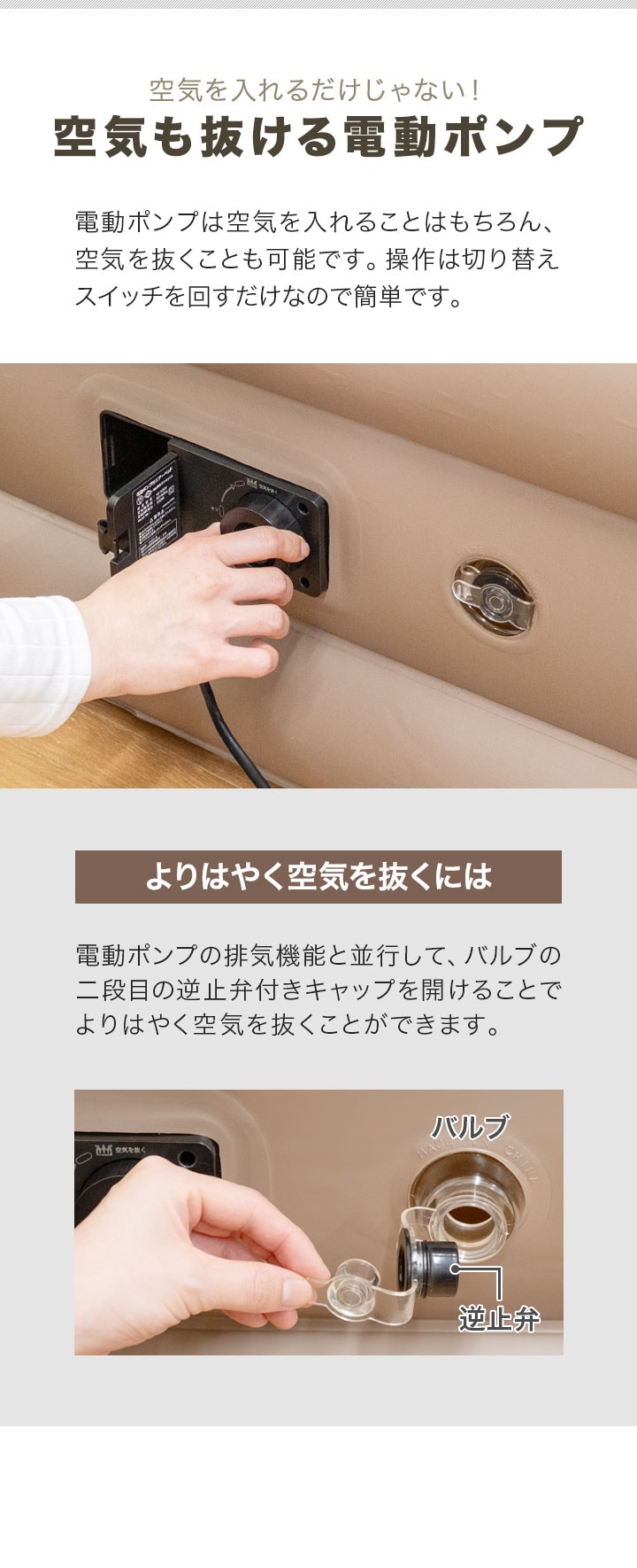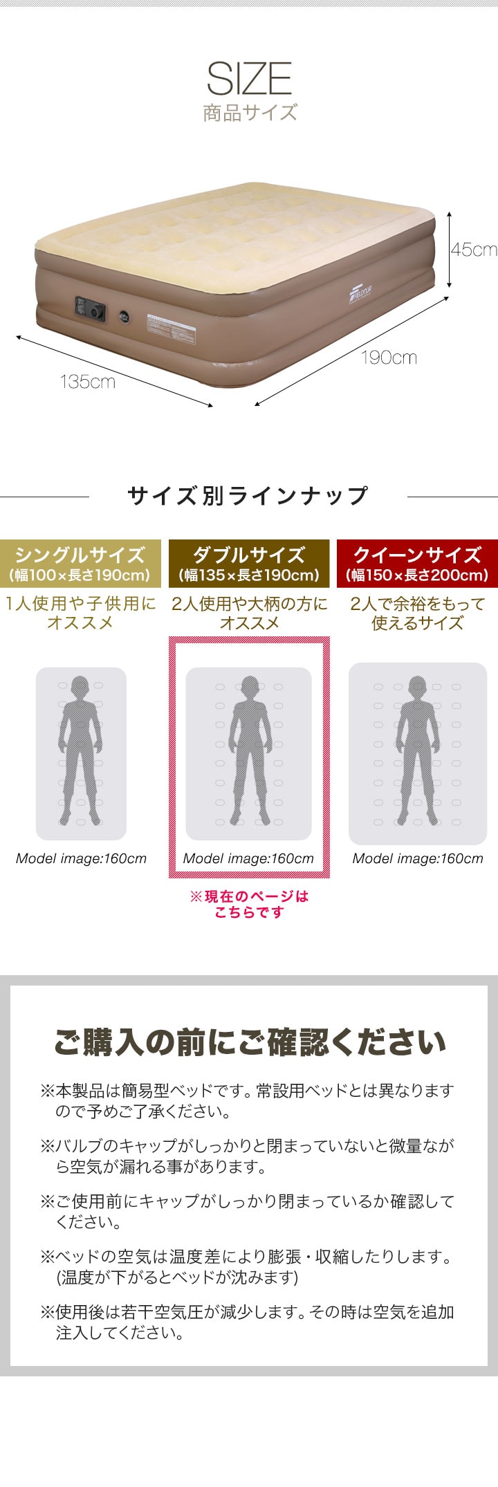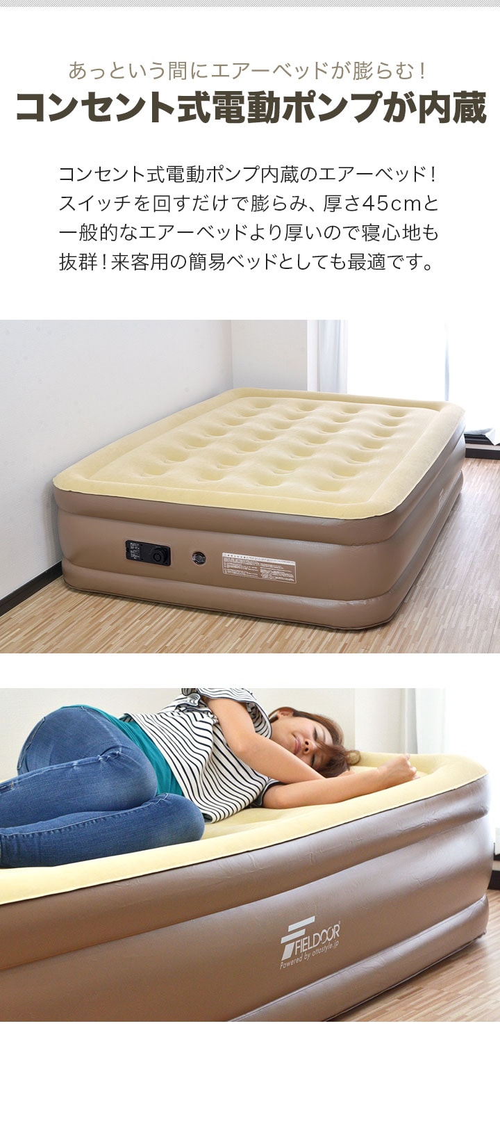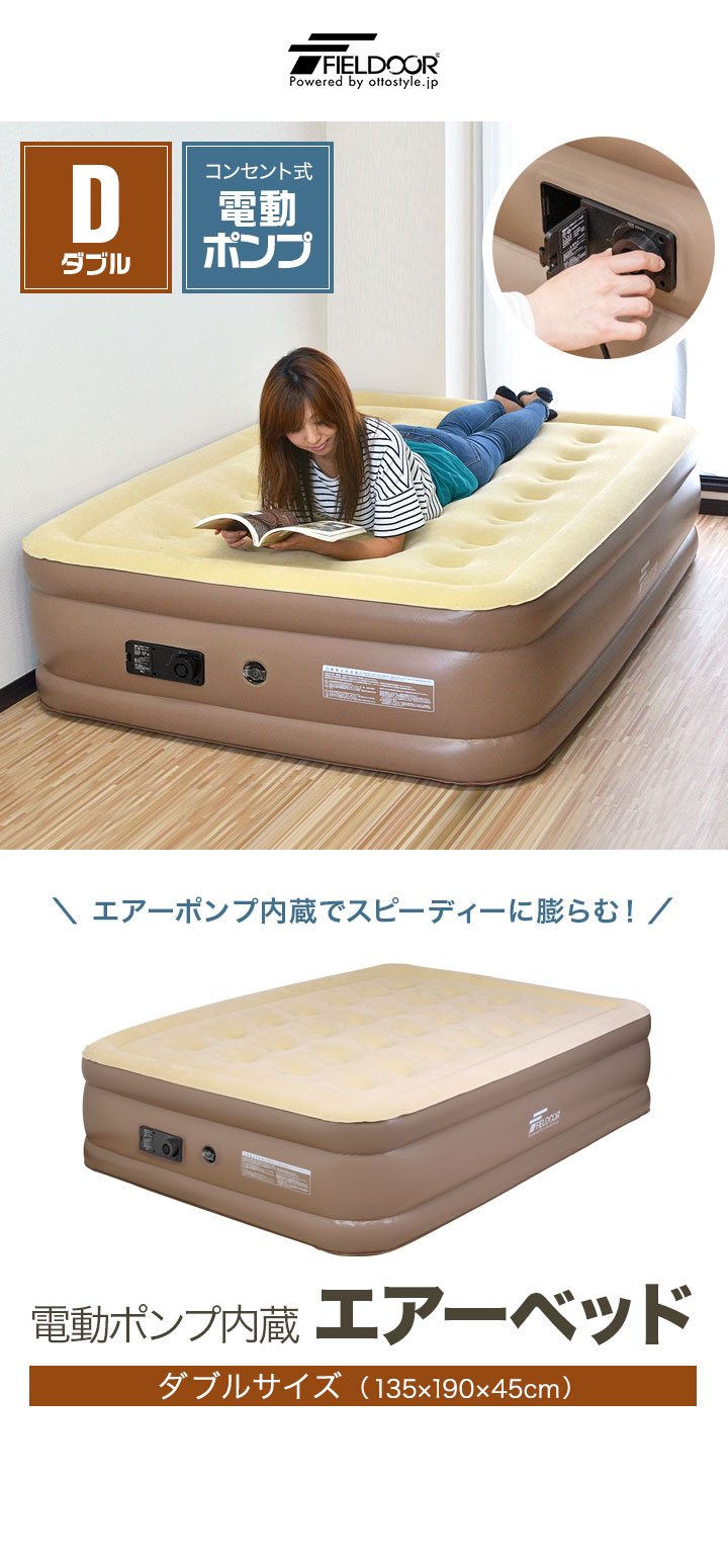 FIELDOOR エアーマット エアーベッド (ダブル) D 電動 ポンプ内蔵 エアマット エアベット 来客用 普段使い 災害 防災 車中泊 昼寝 幅135cm×190cm 高さ45cm 簡易ベッド ベッド エアーマットレス マットレス キャンプ 折りたたみ 送料無料
