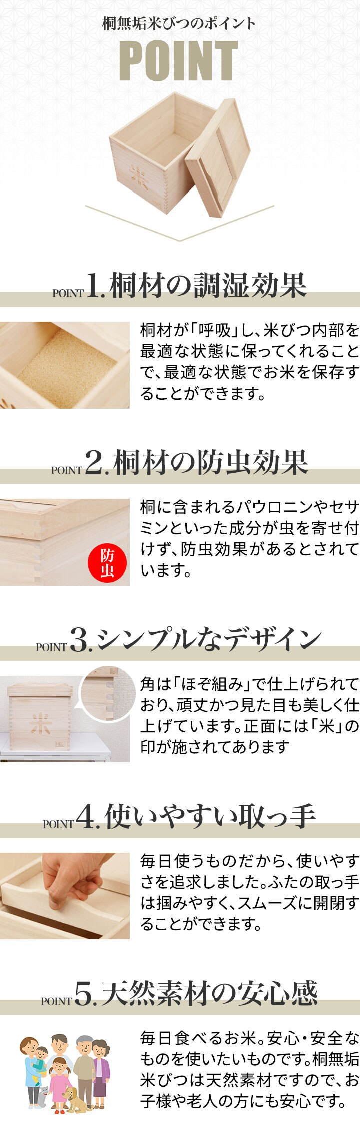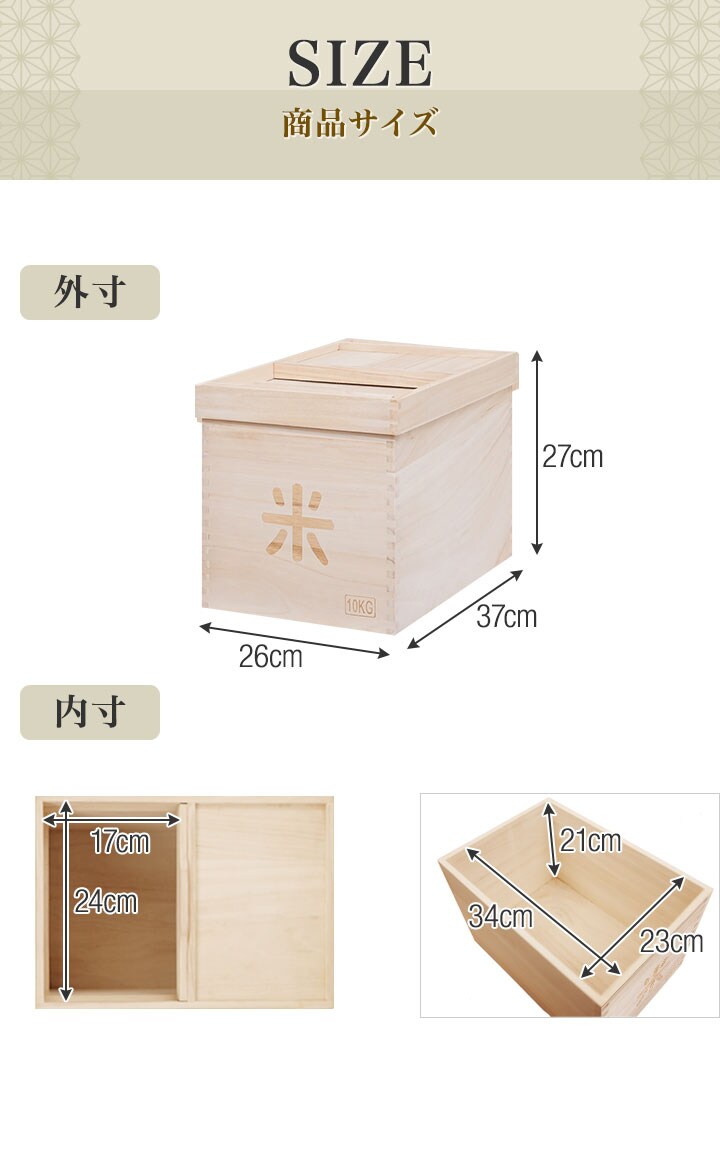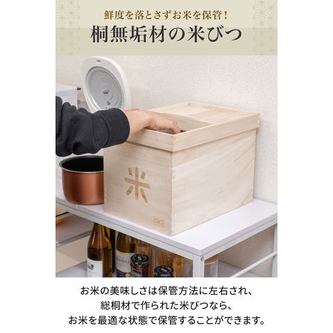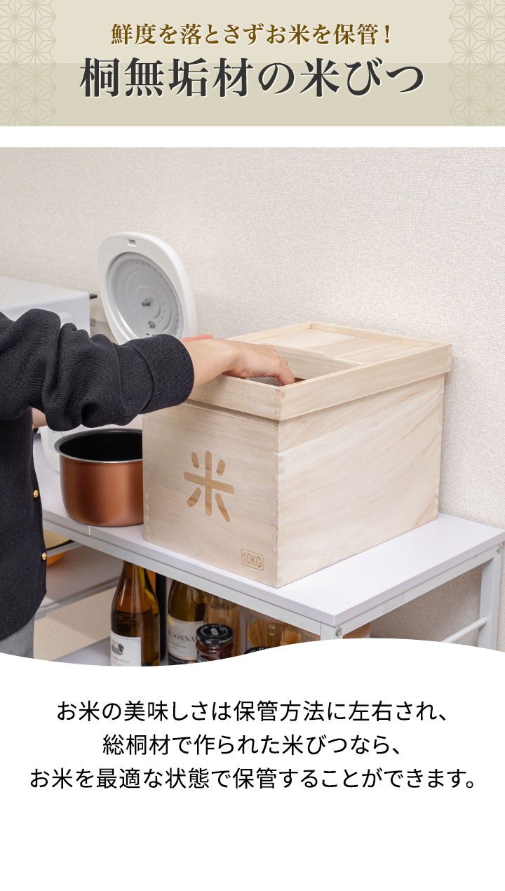 米びつ 桐 10kg おしゃれ キッチン 収納 お米 ライスストッカー ライスボックス ストッカー 防虫 虫除け 収納 米櫃 米ビツ 和風 木製 台所 総桐製 天然木 桐無垢材製『米びつ』10kgサイズ 幅26×奥行37×高さ27cm 送料無料