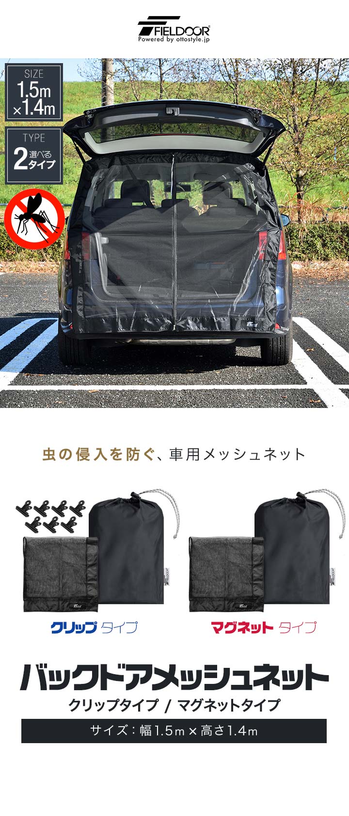 FIELDOOR 車用メッシュネット 150cm×140cm (マグネット固定タイプ) 汎用サイズ 1枚 バックドア/リアゲート用 メッシュカーテン 車用網戸 暑さ対策 風通し 虫対策 防虫ネット 虫よけネット メッシュスクリーン キャンプ アウトドア ウインドウネット 送料無料 メール便