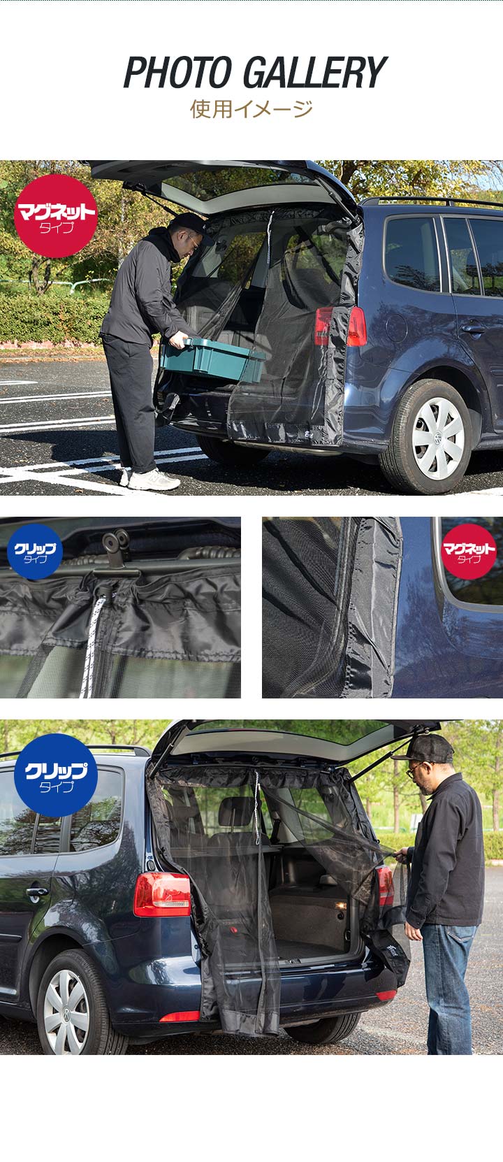 | 特記事項: ※必ず使用するお車のサイズをご確認の上、お買い求め下さい。 ※本体をセットしたままバックドアを閉めないで下さい。バックドアの破損や視界が悪くなり事故に繋がる恐れがあります。 |
