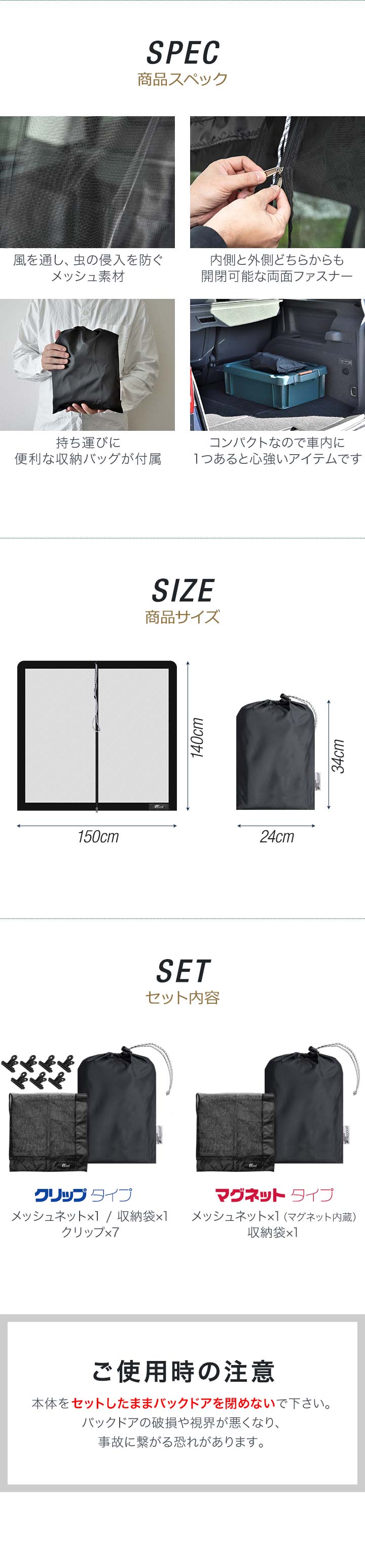 | セット内容: ・メッシュネット本体×1 ・専用収納バッグ×1 ・取扱説明書(日本語) ※クリップタイプにはクリップが7個付属します |