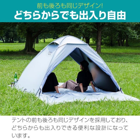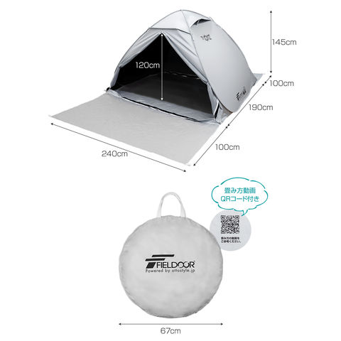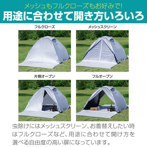 FIELDOOR テント ワンタッチ (グレー/グランドシート付セット) 240cm 2人用 3人用 4人用 5人用 大型 遮光 遮熱 UVカット 耐水 公園 ワンタッチテント ポップアップテント 日よけ サンシェード メッシュ ドームテント 簡易テント 簡単 ピクニック フルクローズ 送料無料