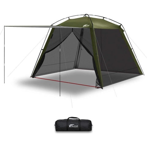 FIELDOOR テント スクリーンタープ (標準:カーキ/テント本体のみ) スクリーンテント 幅285×奥行285cm 日よけ ドームテント タープテント タープ キャノピー ポール2本付き 日よけテント 虫除け 虫よけ 蚊帳 メッシュ 大型 サンシェード 組み立て 簡単 送料無料