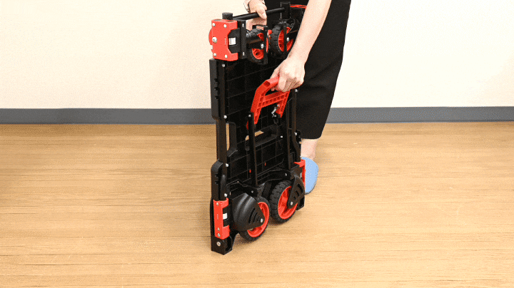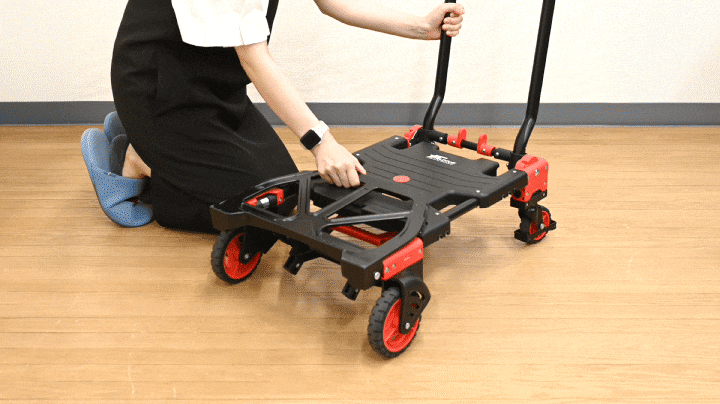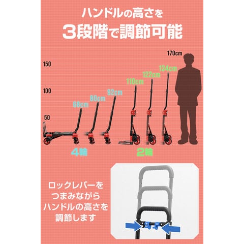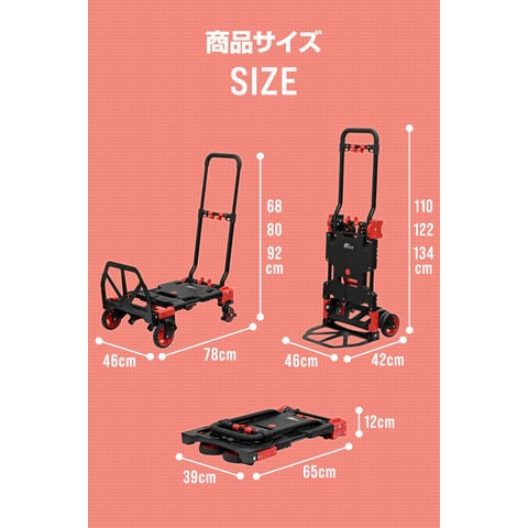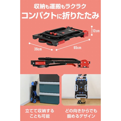 FIELDOOR 台車 折りたたみ (ブラック×レッド) 折りたたみ台車 コンパクト キャスター付き 静音 4輪/2輪台車 2WAYタイプ 耐荷重140kg ハンドキャリー 手押し台車 スリム フラット キャリーカート 折り畳み 軽量 業務用 家庭用 アルミ スチール 運搬台車 送料無料