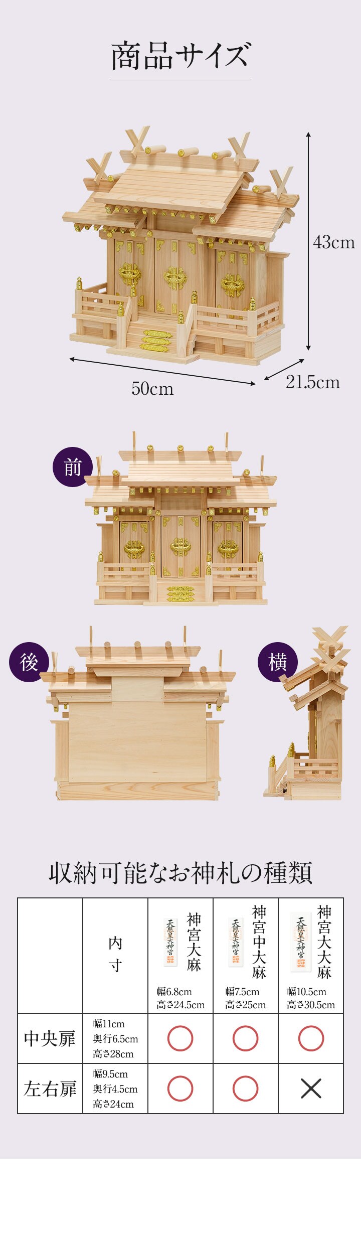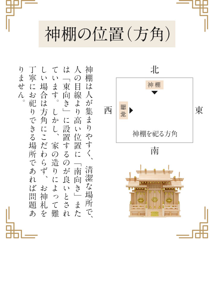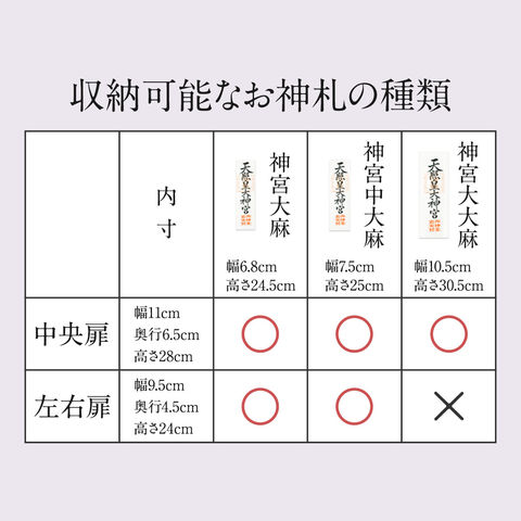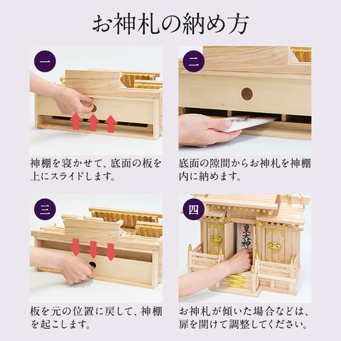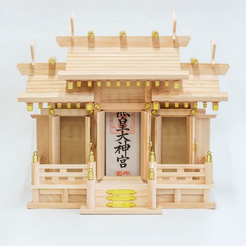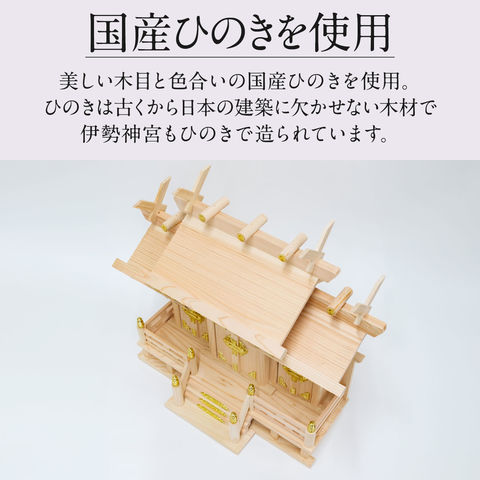 | 商品の状態: 完成品 ※同梱されている千木(×4)を神棚の屋根にある溝4カ所に挿し込んでください。 |