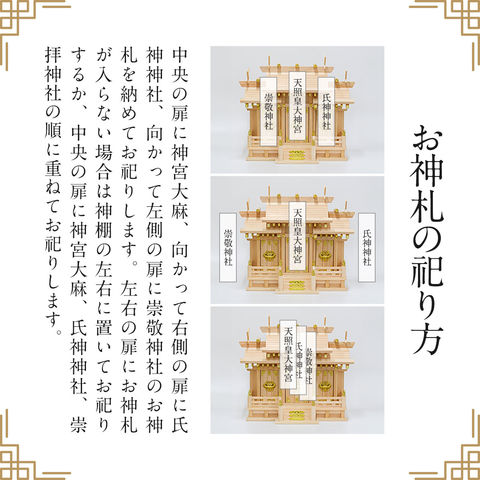 神棚 屋根違い 三社造り シンプル モダン おしゃれ お札立て 御札立て 神具 神札 御札 破魔矢 コンパクト 棚板 国産ひのき 置き型 完成品 組み立て不要 送料無料