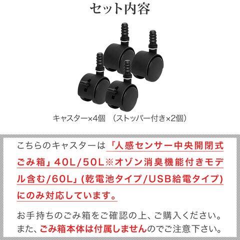 自動開閉 ゴミ箱 専用キャスター4個セット 人感センサー中央開閉式ごみ箱シリーズ 40L/50L/60L用 人感センサー 中央開閉式 ステンレスごみ箱 センサー自動開閉式 ダストボックス ※キャスターのみ/ゴミ箱本体別売 送料無料