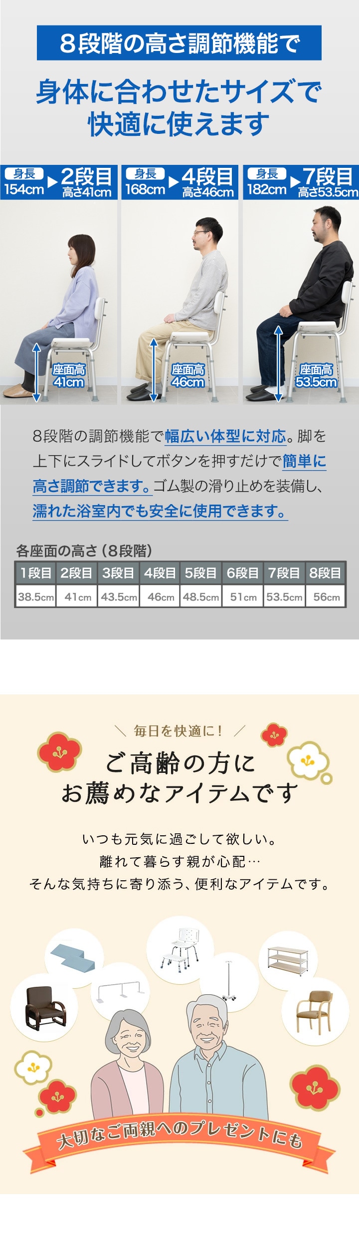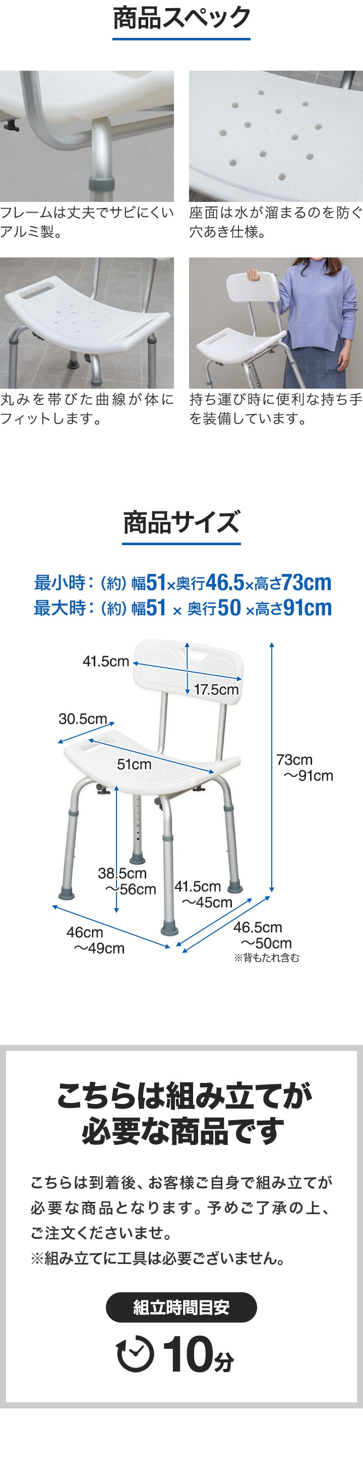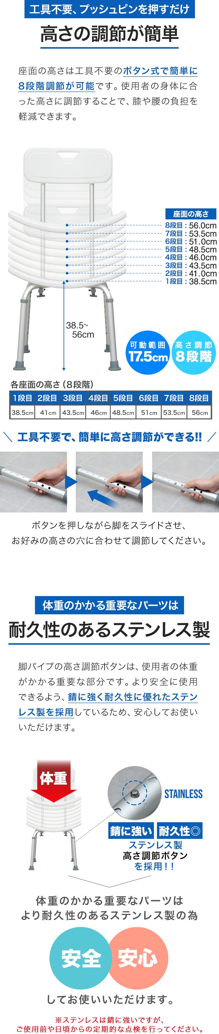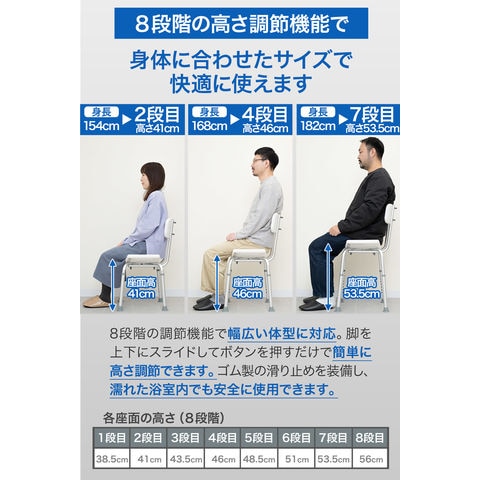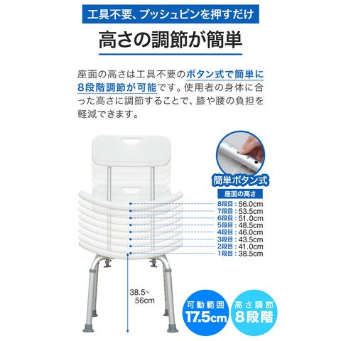 シャワーチェア 介護 お風呂 椅子 シャワー椅子 介護用 バスチェア 背もたれ付き 滑り止め付き 高さ調節 8段階 耐荷重100kg 軽量 アルミ 入浴介助 立ち上がり補助 転倒防止 シャワーチェアー お風呂チェア 風呂イス 介護用品 送料無料