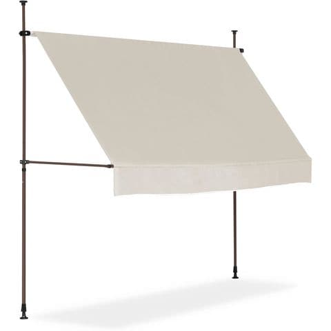 日よけシェード 幅3m (標準:ライトベージュ/ブラウンフレーム/本体のみ) つっぱり式 巻き上げ オーニング UVカット 撥水 サンシェード 折りたたみ 目隠し 物干し つっぱり日よけスクリーン 突っ張り棒 日除け 雨よけ おしゃれ よしず すだれ シェード 送料無料
