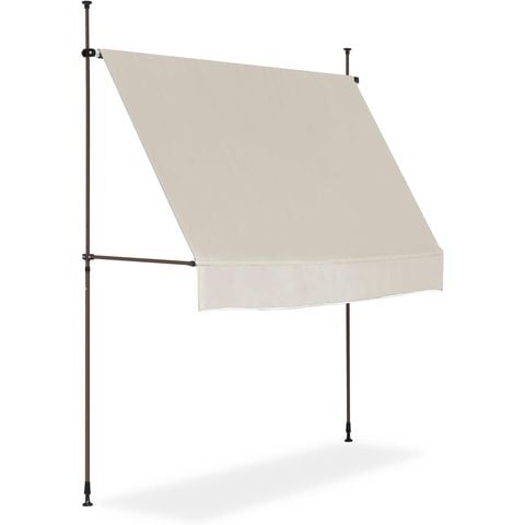 日よけシェード 幅2m (標準:ライトベージュ/ブラウンフレーム/本体のみ) つっぱり式 巻き上げ オーニング UVカット 撥水 サンシェード 折りたたみ 目隠し 物干し つっぱり日よけスクリーン 突っ張り棒 日除け 雨よけ おしゃれ よしず すだれ シェード 送料無料
