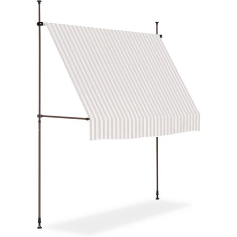 日よけシェード 幅2m (標準:ライトベージュストライプ/ブラウンフレーム/本体のみ) つっぱり式 巻き上げ オーニング UVカット 撥水 サンシェード 折りたたみ 目隠し 物干し つっぱり日よけスクリーン 突っ張り棒 日除け 雨よけ おしゃれ よしず すだれ シェード 送料無料