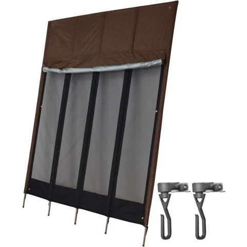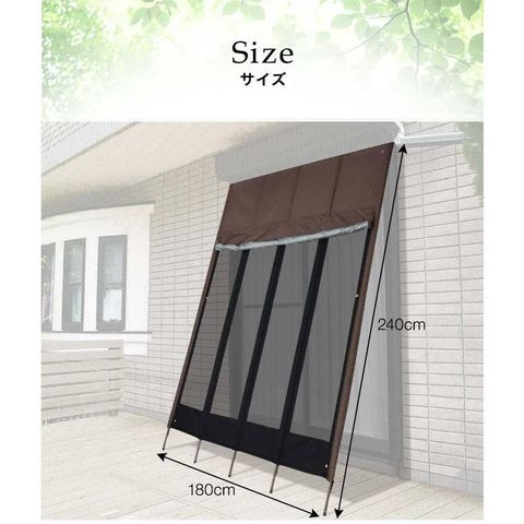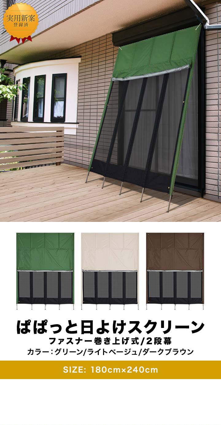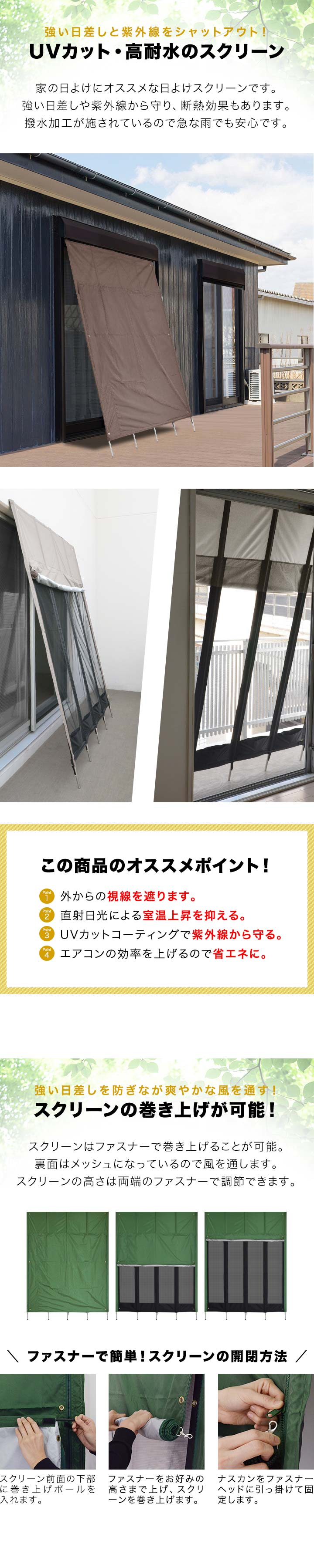 日よけスクリーン 幅1.8×丈2.4m (標準:ダークブラウン/本体&ネジ式自在フック2個組) ぱぱっと日よけスクリーン ファスナー巻き上げ/メッシュ 2段幕 ポール付 日よけ サンシェード 日よけスクリーン 簡単設置 シェード UVカット 撥水 西日 おしゃれ たてす よしず 送料無料