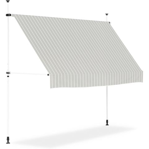 日よけシェード 幅3m (標準:ライトグレーストライプ/ホワイトフレーム/本体のみ) つっぱり式 巻き上げ オーニング UVカット 撥水 サンシェード 折りたたみ 目隠し 物干し つっぱり日よけスクリーン 突っ張り棒 日除け 雨よけ おしゃれ よしず すだれ シェード 送料無料