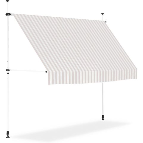 日よけシェード 幅3m (標準:ライトベージュストライプ/ホワイトフレーム/本体のみ) つっぱり式 巻き上げ オーニング UVカット 撥水 サンシェード 折りたたみ 目隠し 物干し つっぱり日よけスクリーン 突っ張り棒 日除け 雨よけ おしゃれ よしず すだれ シェード 送料無料