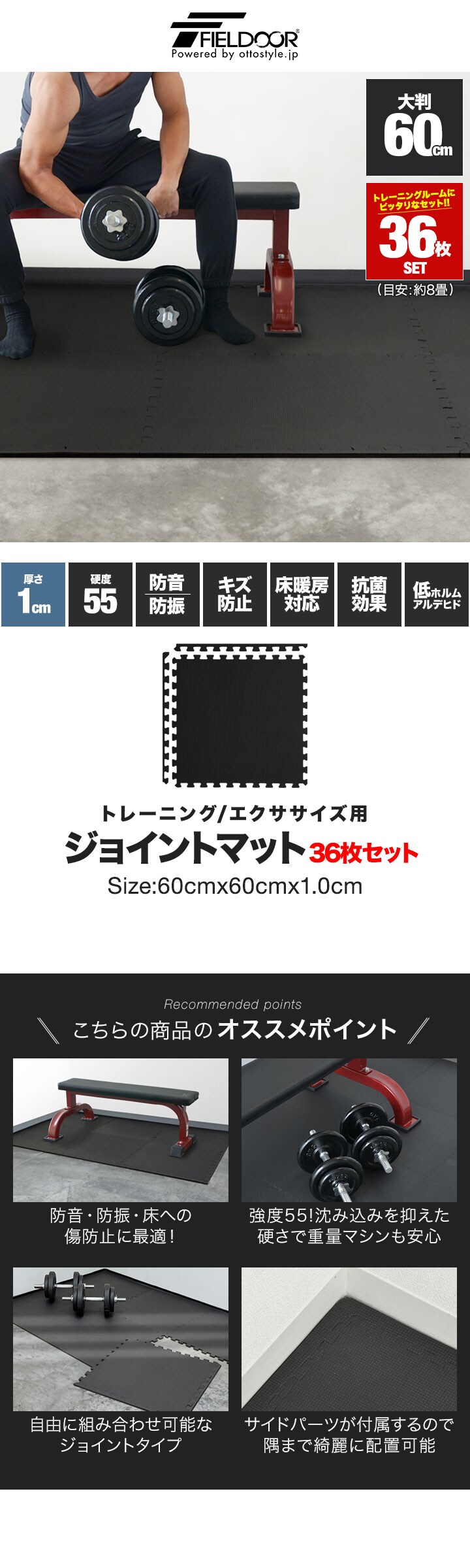 FIELDOOR トレーニングマット 筋トレ マット 大判 60cm 36枚組 厚手 10mm ジョイントマット 防音 防振 キズ防止 ストレッチマット フィットネスマット ヨガマット ダイエット 筋トレグッズ トレーニング/エクササイズ用ジョイントマット 送料無料