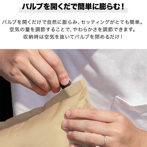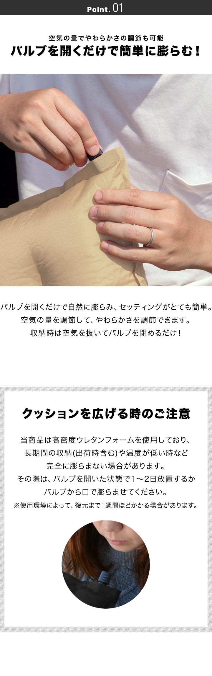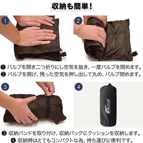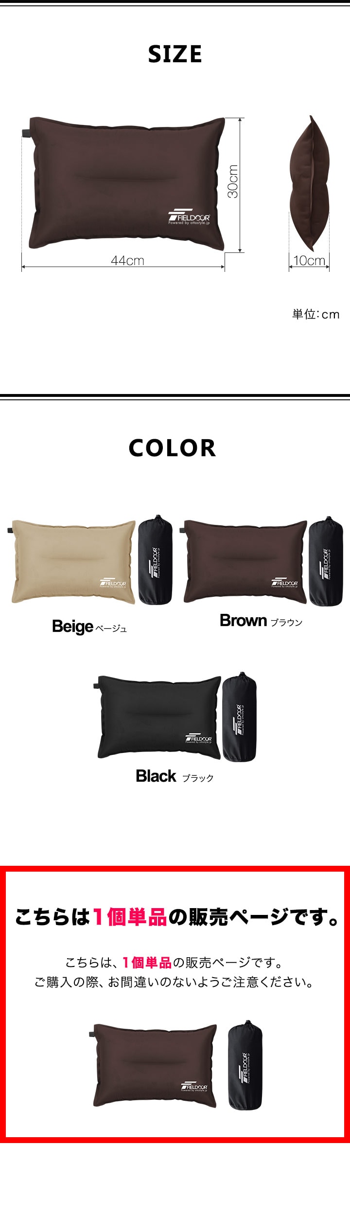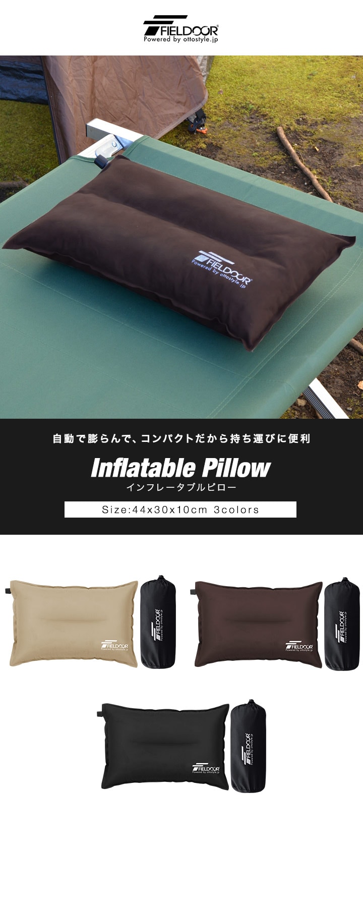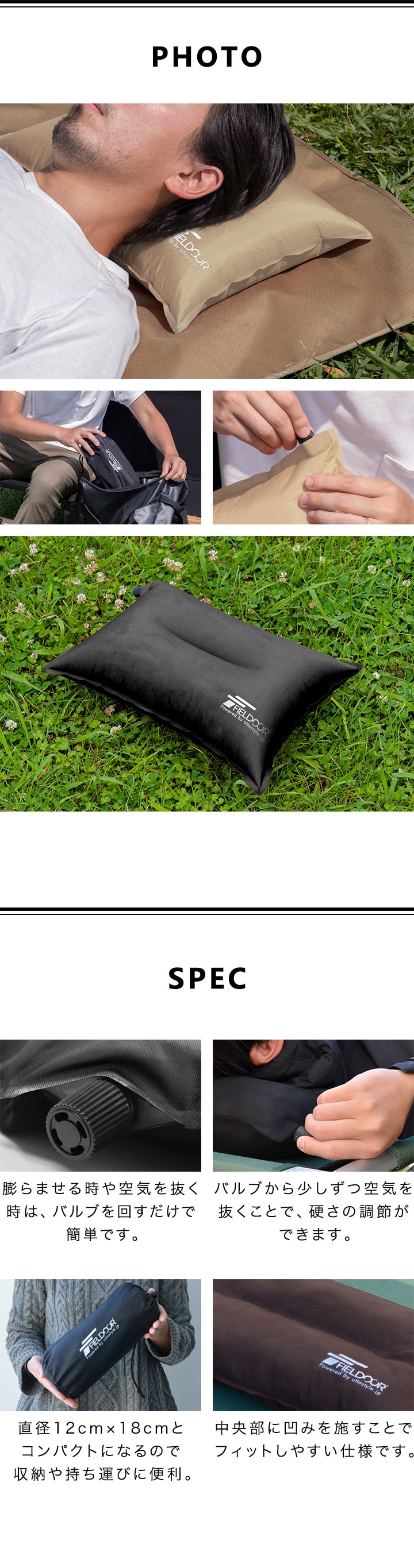 FIELDOOR エアークッション 44×30cm (ベージュ/1個単品) 厚さ 10cm 自動膨張 インフレータブルピロー アウトドア クッション エアーピロー エアピロー 枕 空気枕 携帯枕 車中泊 キャンプ キャンプ用品 野外 防災 用品 グッズ 送料無料
