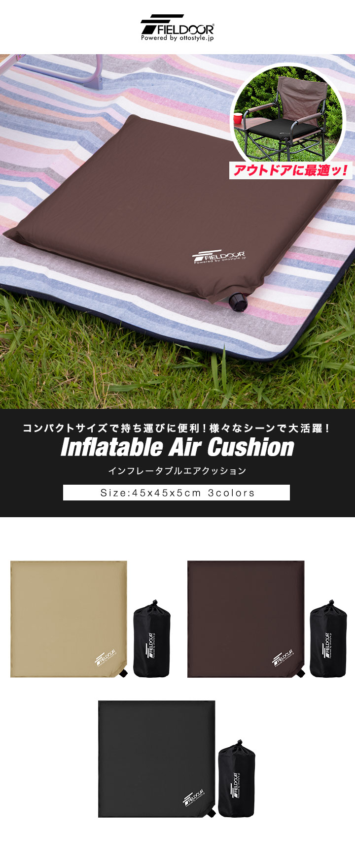 FIELDOOR エアークッション 45×45cm (ベージュ/1個単品) 厚さ 5cm 自動膨張 アウトドア クッション 座布団 枕 エアー 折りたたみ アウトドア ざぶとん 車中泊マット オフィス キャンプ コンサート 野外 フェス スポーツ観戦 運動会 防災 グッズ 送料無料