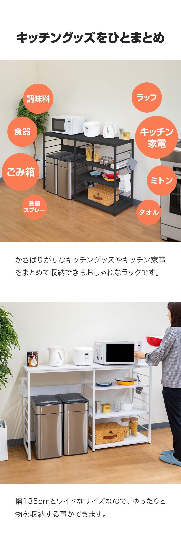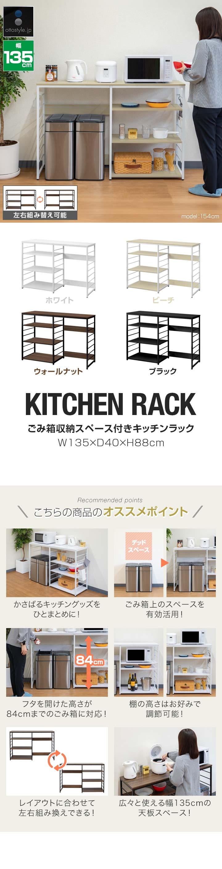 キッチンカウンター キッチンラック ゴミ箱 (ウォールナット) 幅135 ワイド ゴミ箱上 レンジ台 レンジラック 135×40×88cm 4段 ゴミ箱上ラック キッチン収納 収納 ラック 電子レンジ 間仕切り 可動棚 収納棚 棚 レンジボード キッチンボード 送料無料