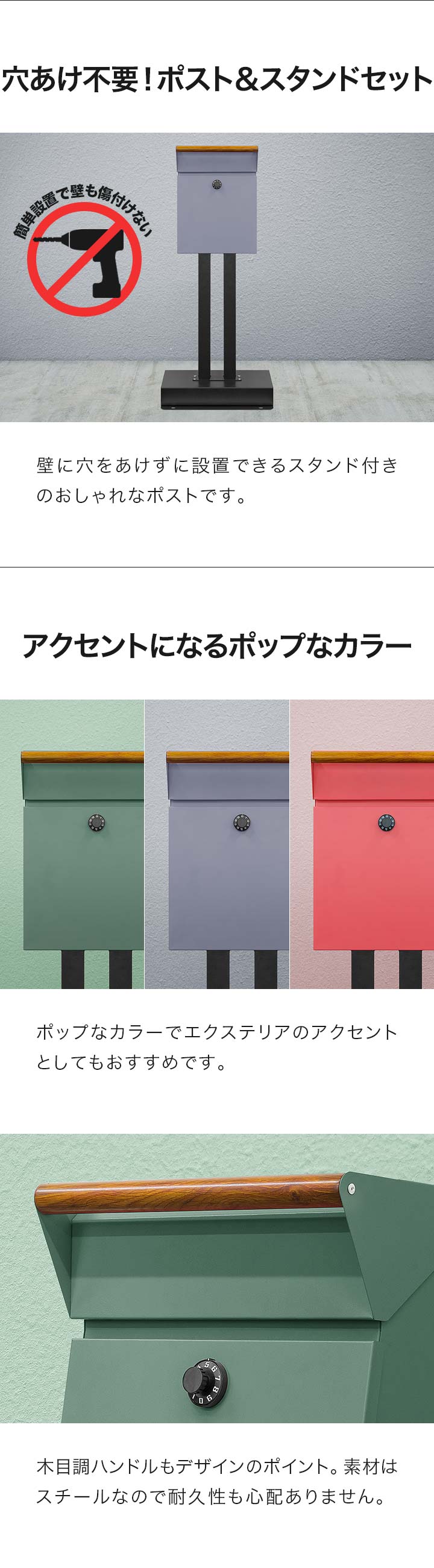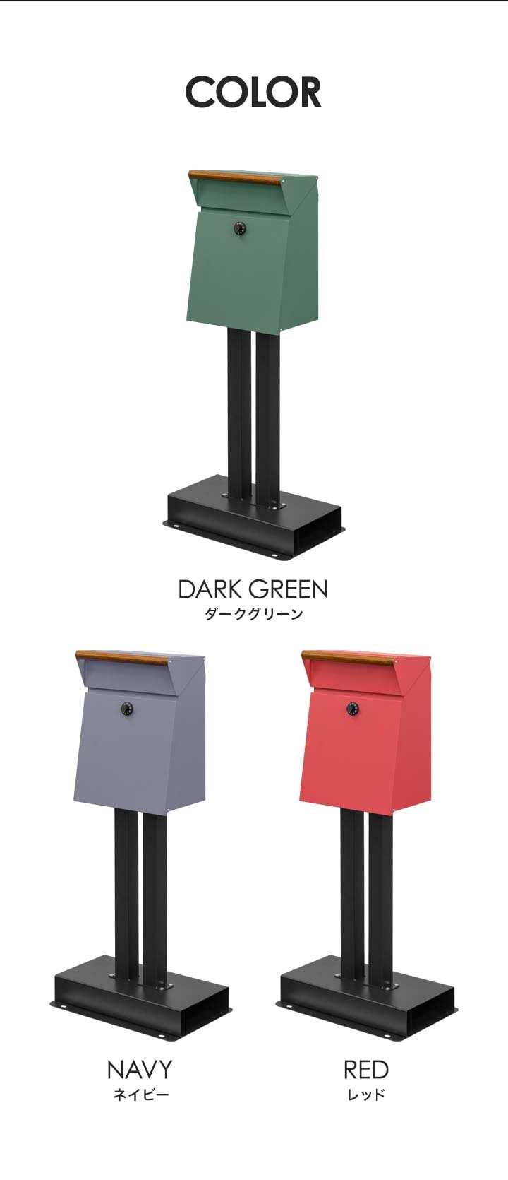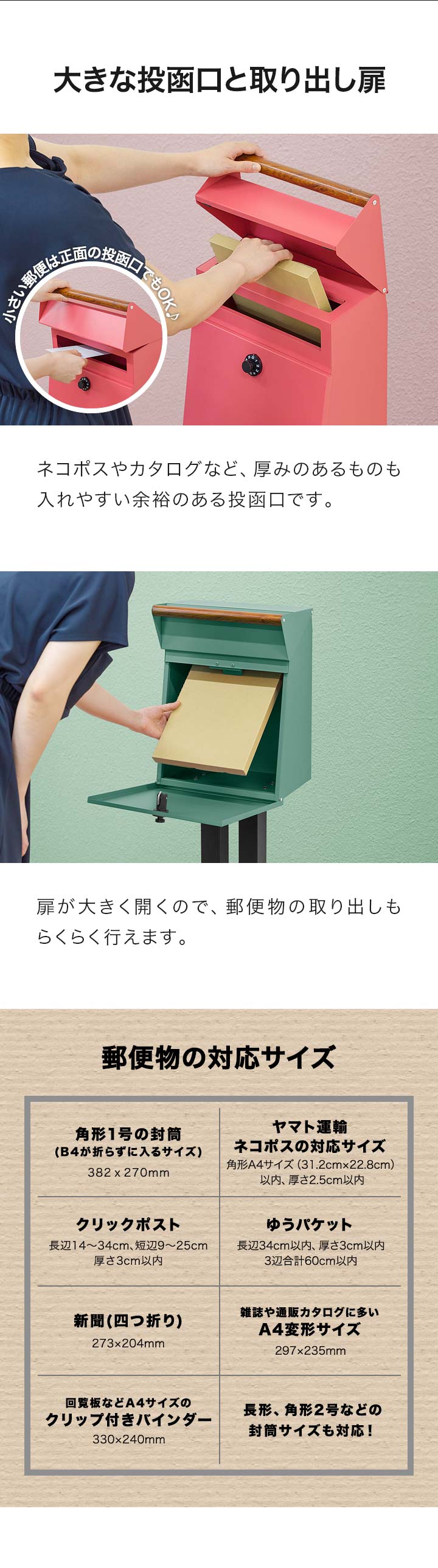 ポスト 置き型 郵便ポスト (ダークグリーン) スタンドポスト 郵便受け ダイヤル錠 鍵付き 角型 A4/B4サイズ スタンドタイプ 据え置き 戸建て 家庭用 セキュリティ おしゃれ 北欧 ダイヤルロック式メールボックス 新聞受け MailBox 玄関 送料無料