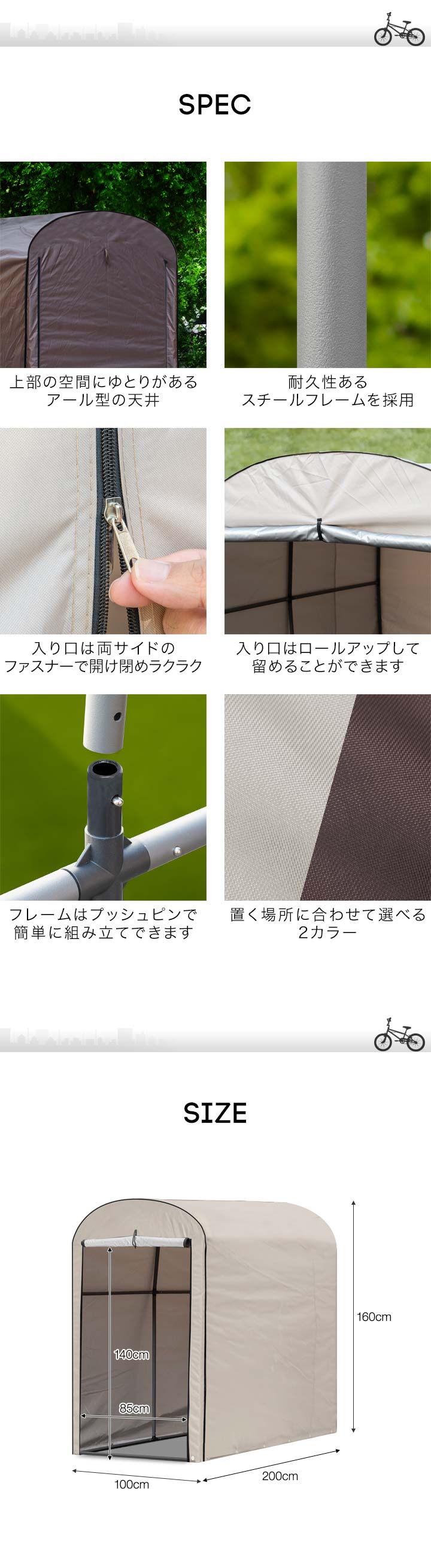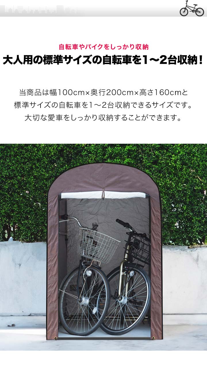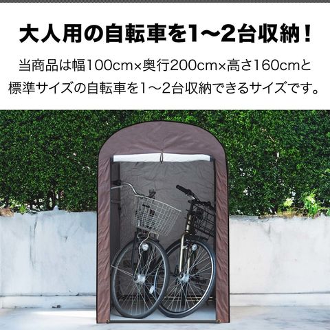 幅100cm×奥行200cm×高さ160cmと標準サイズの自転車を1~2台収納できるサイズです。大切な愛車をしっかり収納することができます。
