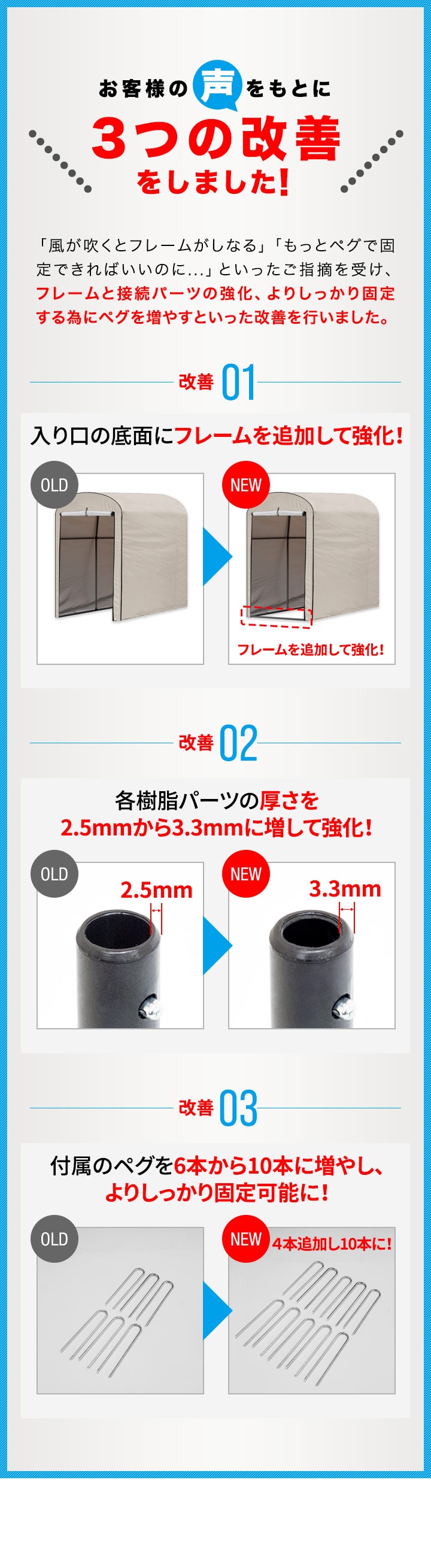 高耐候性カバー採用、雨や日差し・埃から自転車、バイクを守る