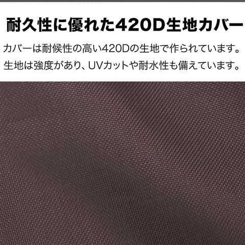 カバーには日光や風雨への耐候性の高い420Dの生地を採用。生地は強度があり、UVカットや耐水性も備えています。裏面はシルバーコーティング済みで暑さも軽減できます。