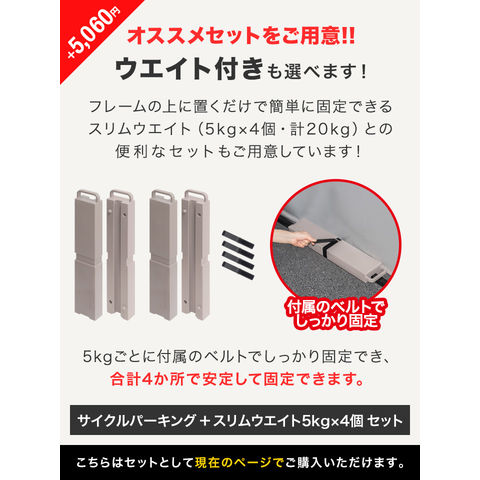 | 特記事項: ※上に立ったり、踏み台にするような行為はお止めください。 ※凹凸がある不安定な場所や濡れていたり、凍結していて滑りやすい場所等に設置しないでください。 ※強風下などのご使用環境によっては、20kgのウエイトでは固定が不十分な場合がございます。 設置場所の状況に合わせて、適切な数量をご購入ください。 |
