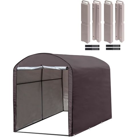 高耐候性カバー採用 自転車置き場 2台/3台用 (ダークブラウン/本体&ウエイト4個セット) サイクルポート ワイド 大型 頑丈 UVカット 屋外 遮熱 耐水 雨除け 収納庫 屋根 簡易 テント ガレージ 盗難防止 サイクルハウス 駐輪場 自転車 バイク 物置 丸屋根 おしゃれ DIY 送料無料