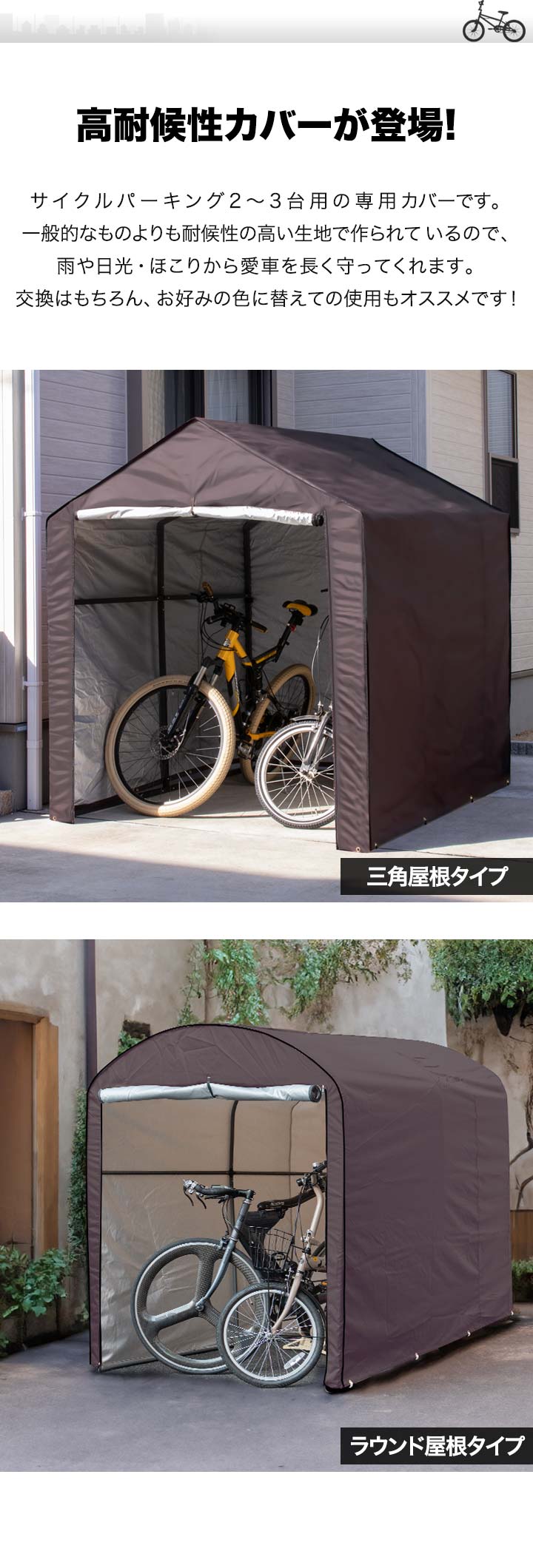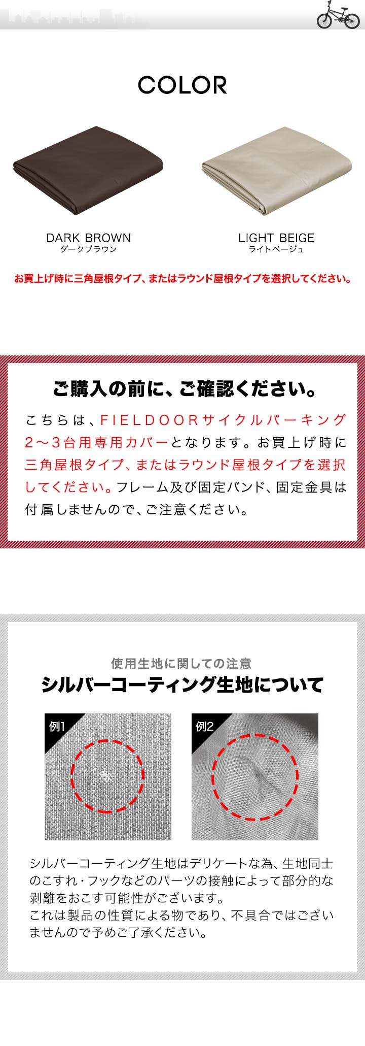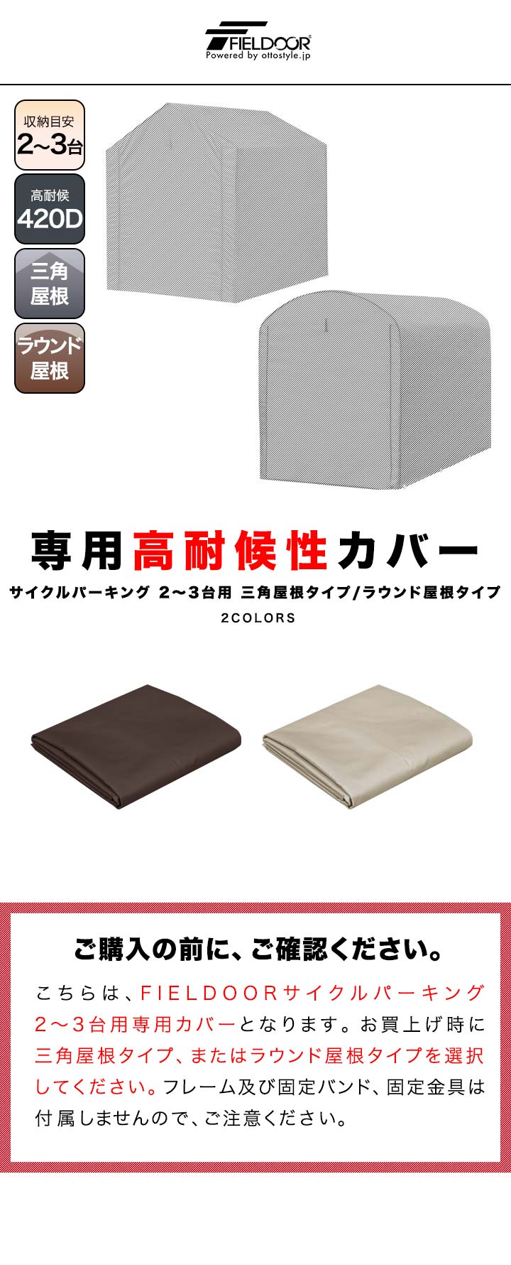 FIELDOOR サイクルパーキング 2台~3台用 (三角屋根用/ライトベージュ) 専用カバー 高耐候性 420D生地 ラウンド屋根用/三角屋根用 自転車置き場 交換用カバー 替えカバー 替えシート 交換用 交換部品 UVカット 遮熱 耐水加工 自転車収納 屋外 保管 雨よけ 送料無料