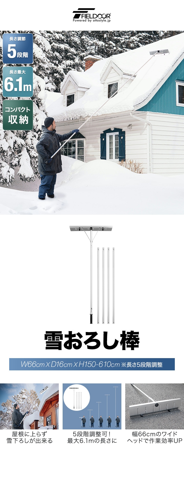 FIELDOOR 雪おろし棒 雪下ろし 棒 スノーレーキ 連結式 長さ5段階 1.5m~6.1m アルミ 軽量 2.5kg 雪かき 雪下ろし用具 雪降ろし 雪おろし 雪落とし 雪庇落とし 屋根 カーポート 冬 屋根雪おろし 除雪 除雪用品 除雪器 道具 送料無料