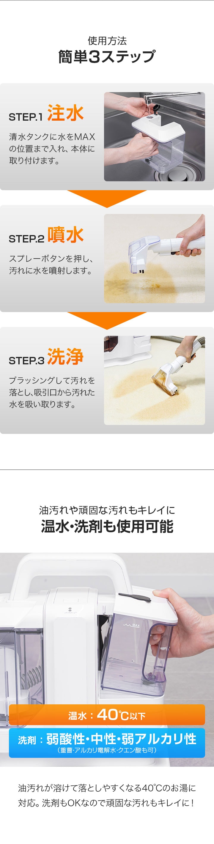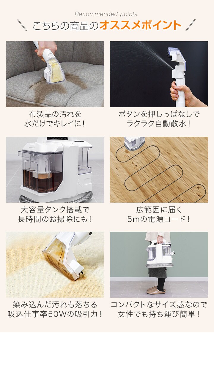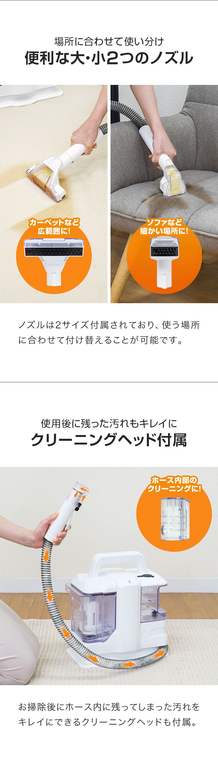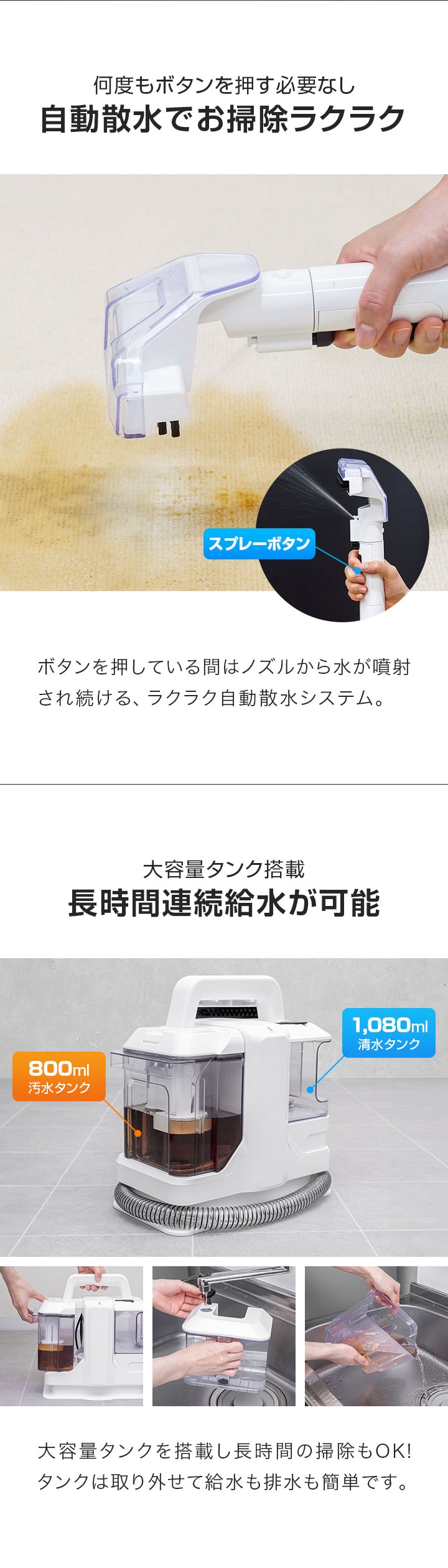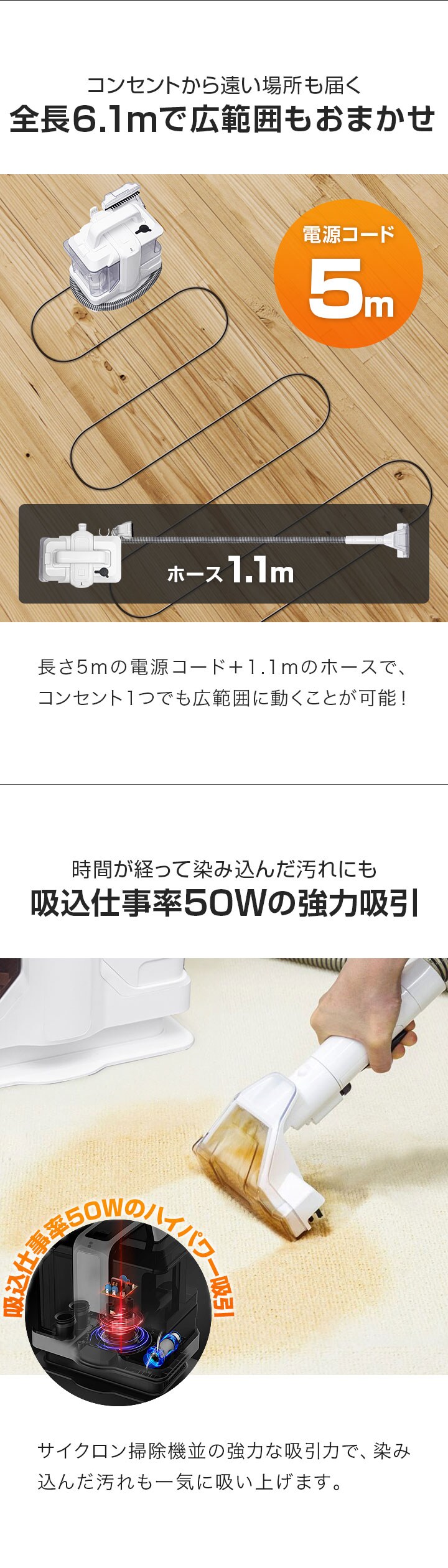 カーペットクリーナー バキュームクリーナー カーペット洗浄機 染み抜き 布洗浄機 大容量 パワフル吸引 50W 温水対応 洗剤対応 水洗いクリーナー 食べこぼし 飲みこぼし 油汚れ カーペット ソファ 車 PSE 家庭用 コンパクト 送料無料