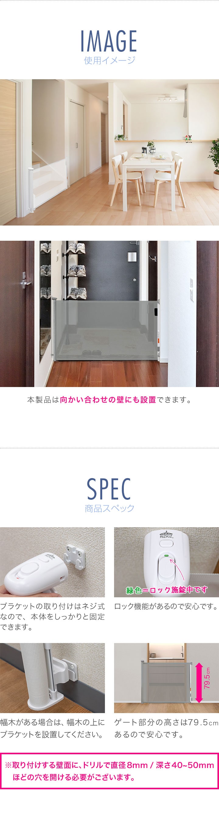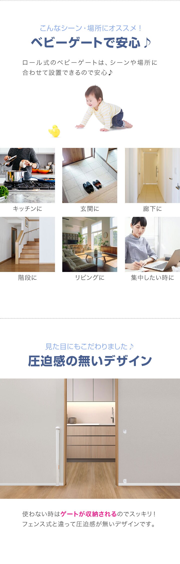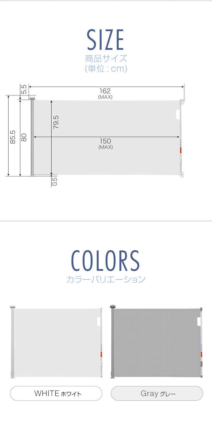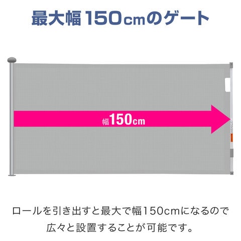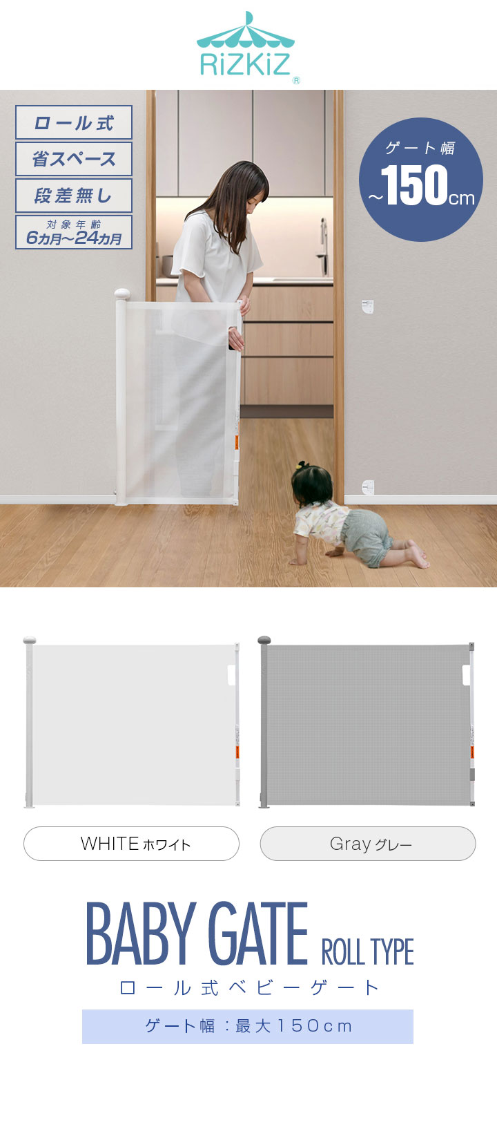 RiZKiZ ベビーゲート ロール式 (ホワイト) ワイド伸縮式 最大幅150cm×高さ80cm 巻き取り式 ダブルロック 柵 フェンス 安全ゲート セーフティゲート キッチン 階段 ペットゲート 赤ちゃん 安全 男の子 女の子 セーフティーグッズ 子供 送料無料