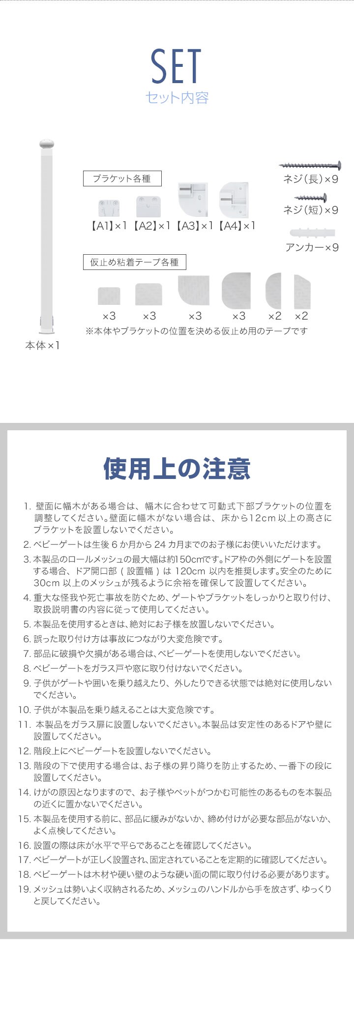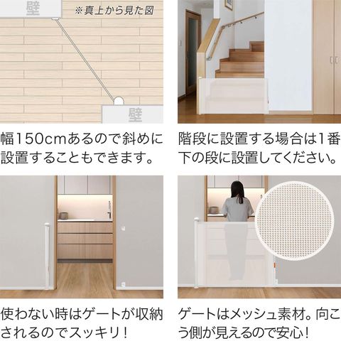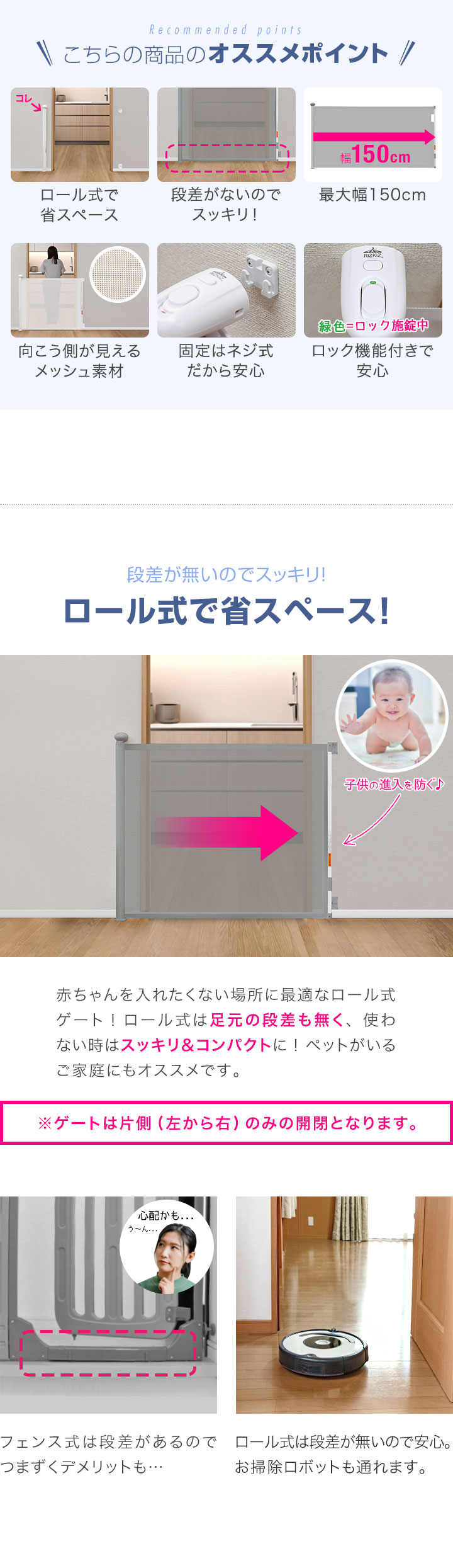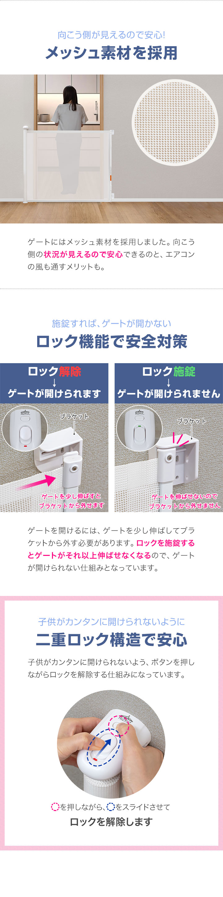 RiZKiZ ベビーゲート ロール式 (ホワイト) ワイド伸縮式 最大幅150cm×高さ80cm 巻き取り式 ダブルロック 柵 フェンス 安全ゲート セーフティゲート キッチン 階段 ペットゲート 赤ちゃん 安全 男の子 女の子 セーフティーグッズ 子供 送料無料