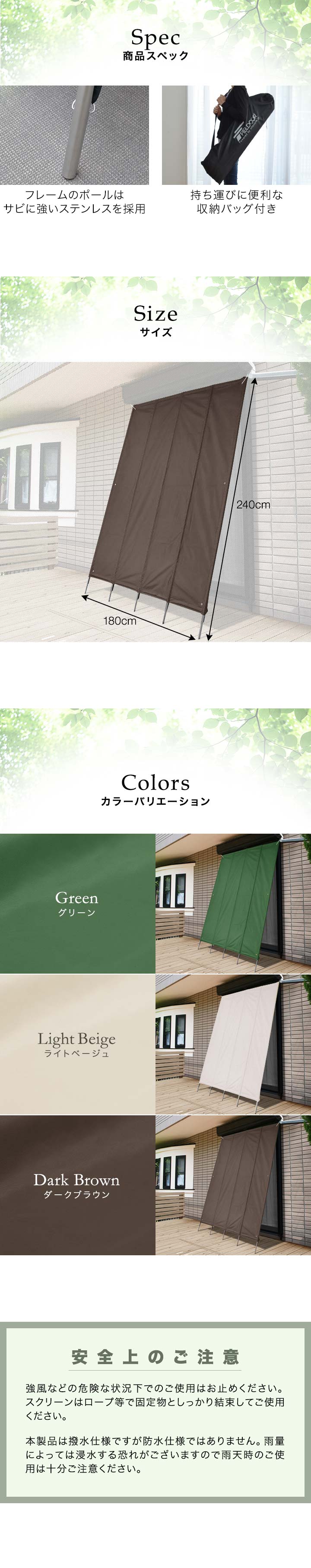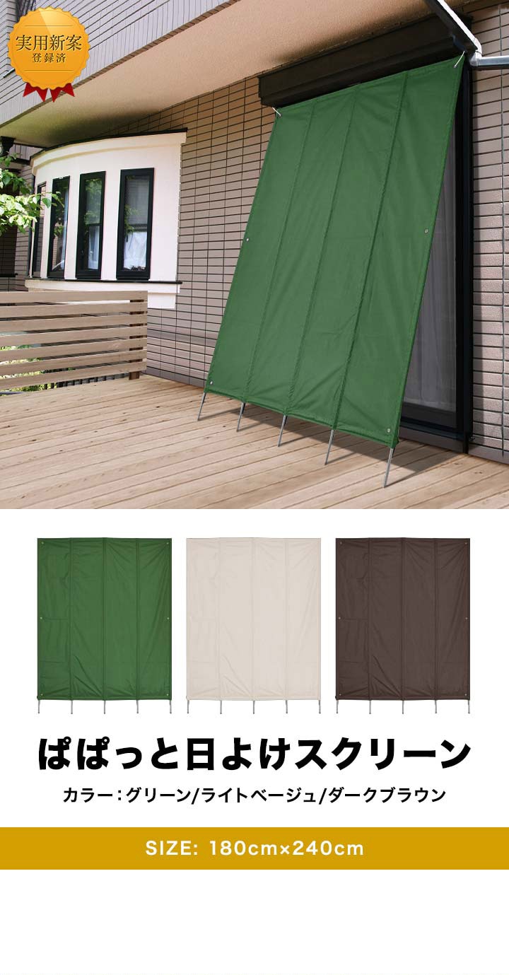 日よけスクリーン 幅1.8×丈2.4m (標準:ダークブラウン/本体&ウェイトバッグ2個組) ぱぱっと日よけスクリーン 日よけ サンシェード 日よけスクリーン ポール付 立てかけるだけの簡単設置 シェード 日除け UVカット 撥水 西日対策 おしゃれ たてす よしず 送料無料