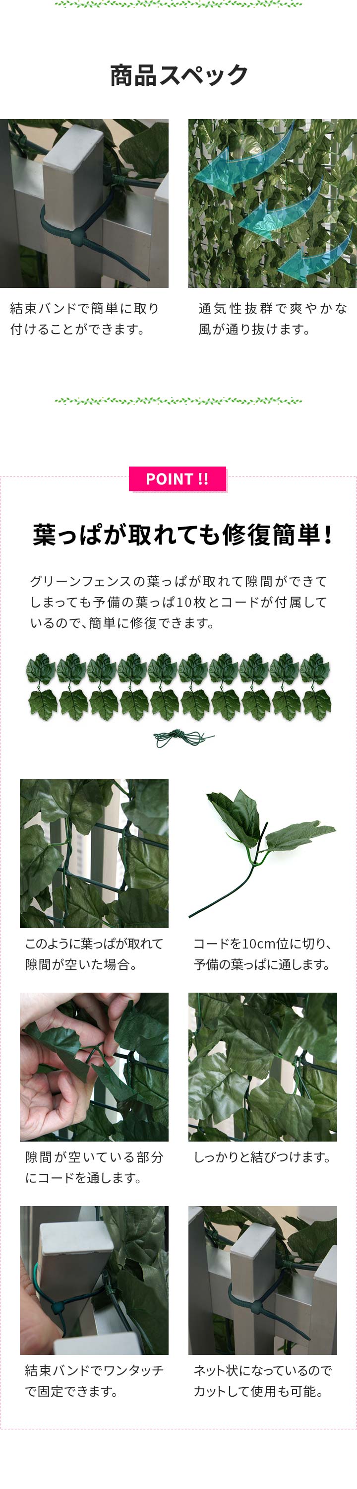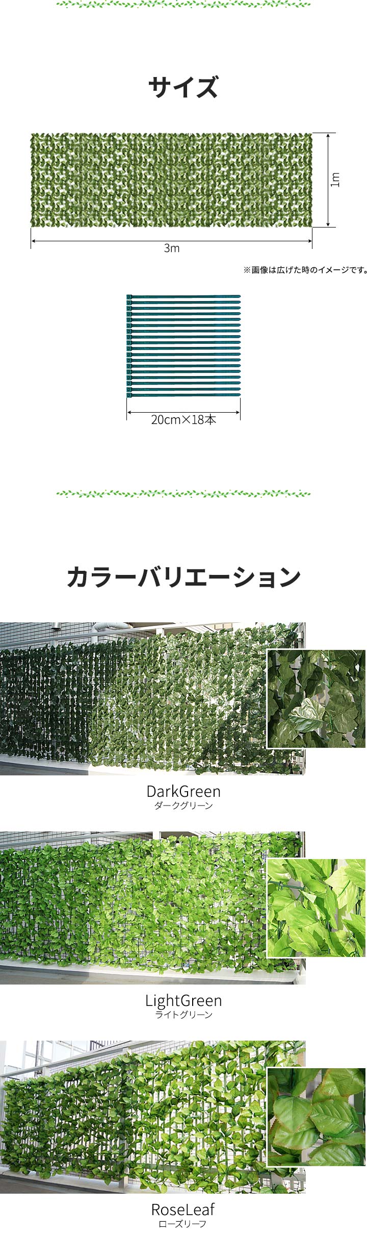 【SALE特価2/11まで】グリーンフェンス 屋外 目隠し (ローズリーフ/1×3m/6本セット) 緑のカーテン グリーンカーテン 目隠しフェンス ベランダ 壁 フェイクグリーン リアル 緑化 葉っぱ グリーン 窓 フェンス 人工観葉植物 植物 葉 リーフラティス 日よけ 送料無料