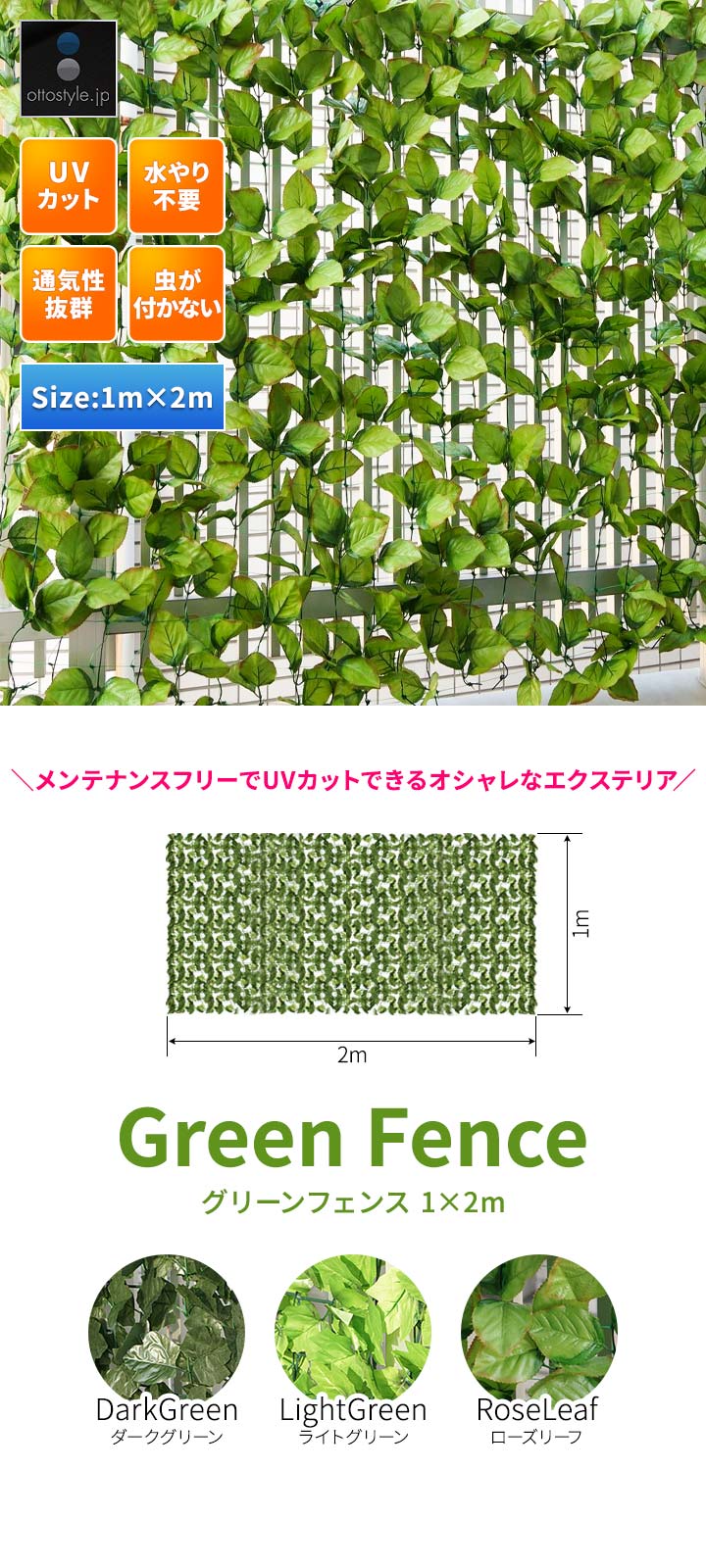 【SALE特価2/11まで】グリーンフェンス 屋外 目隠し (ライトグリーン/1×2m/6本セット) 緑のカーテン グリーンカーテン 目隠しフェンス ベランダ 壁 フェイクグリーン リアル 緑化 葉っぱ グリーン 窓 フェンス 人工観葉植物 植物 葉 リーフラティス 日よけ 送料無料
