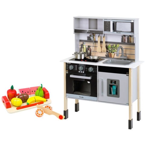 ミーレ ままごと キッチン (お鍋5点+フルーツセット) 木製 製氷機付き 専用お鍋・フライパン5点セット付き 子供 子ども 3歳~ ごっこ遊び ままごとキッチン ままごとセット ままごとキッチンセット 木製ままごと 知育玩具 かわいい クリスマス 送料無料