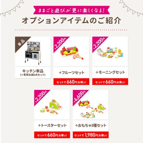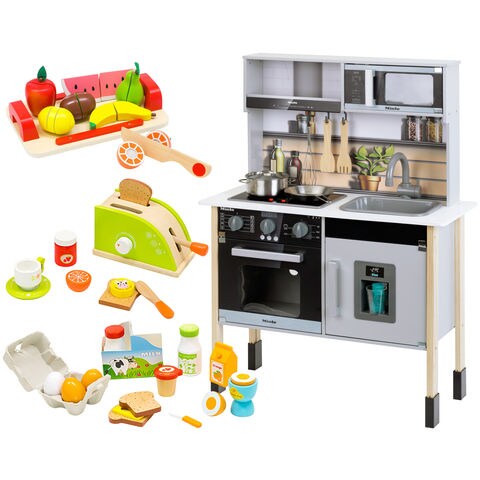 ミーレ ままごと キッチン (お鍋5点+おもちゃ3種セット) 木製 製氷機付き 専用お鍋・フライパン5点セット付き 子供 子ども 3歳~ ごっこ遊び ままごとキッチン ままごとセット ままごとキッチンセット 木製ままごと 知育玩具 かわいい クリスマス 送料無料