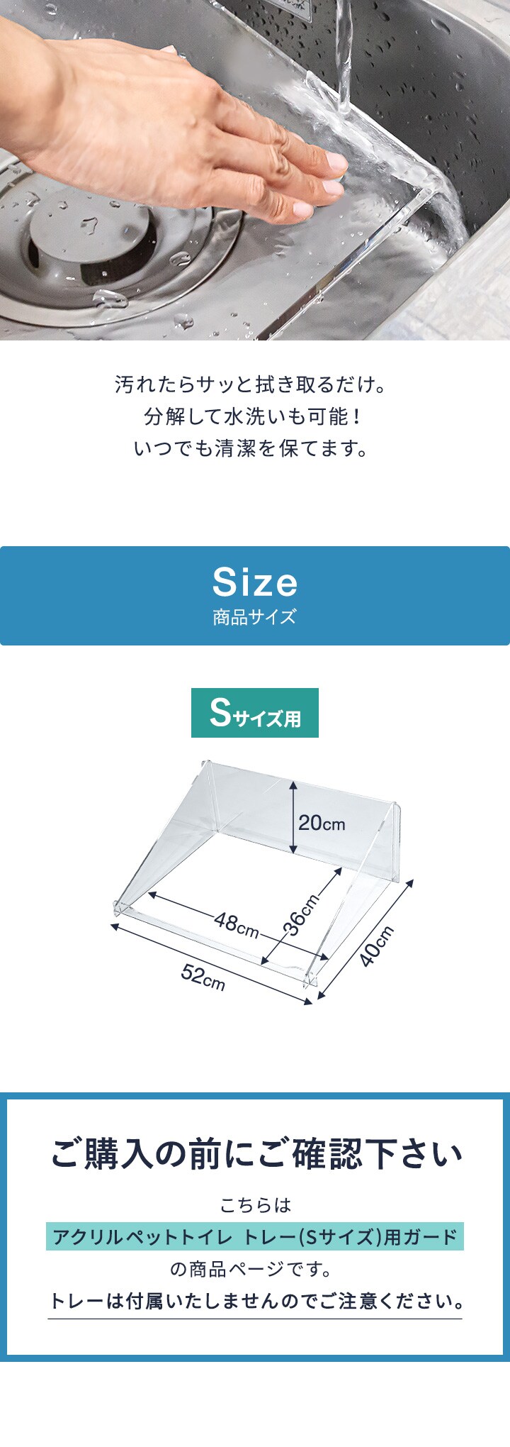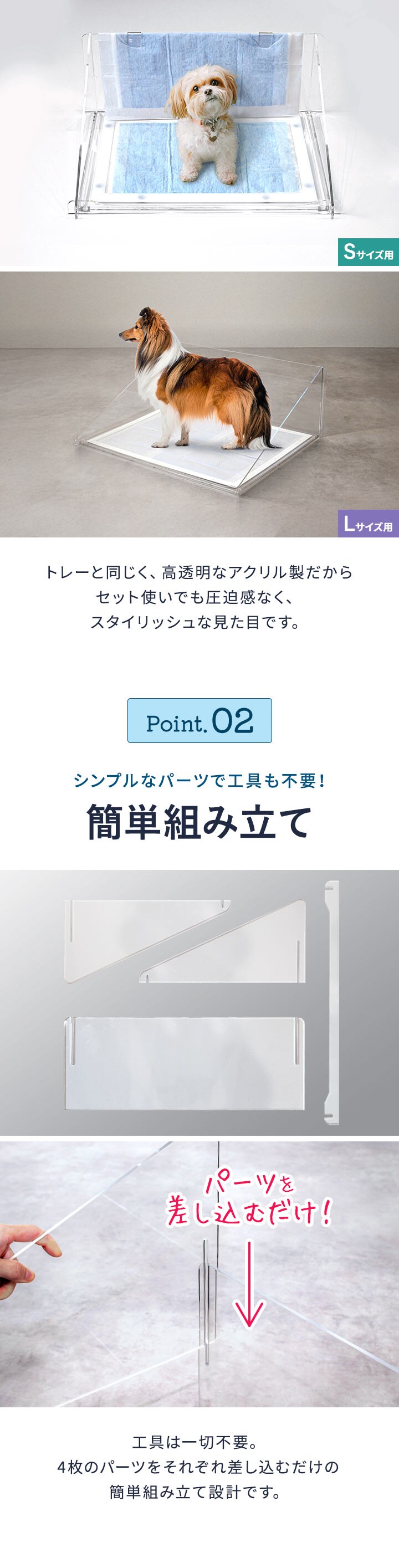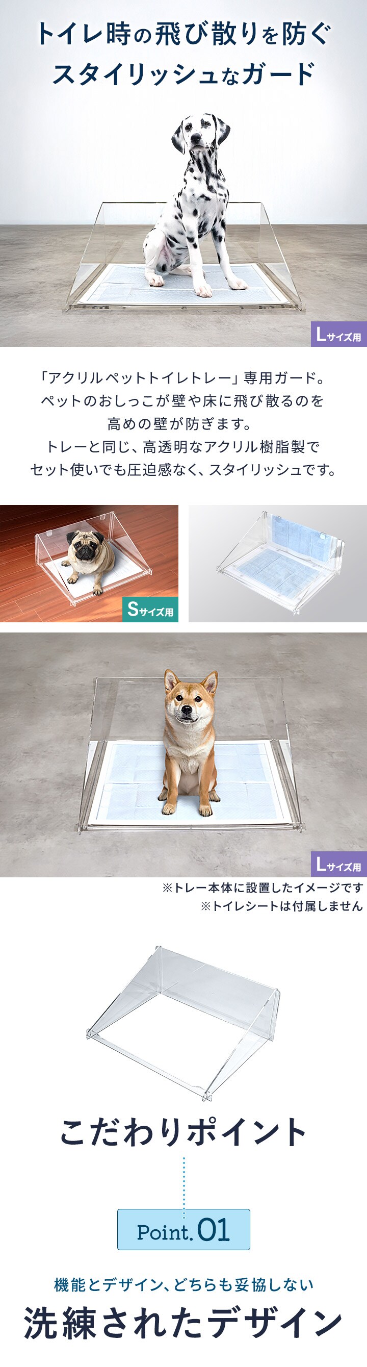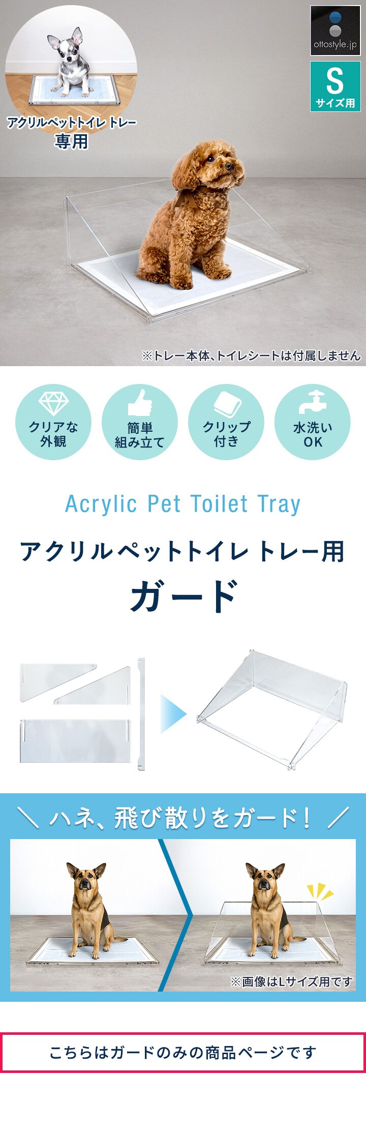 アクリルペットトイレ トレー 専用 (Sサイズ/48x36cm用) 飛散ガード アクリル ガード コの字 犬 ペットシーツ ペットシート クリップ固定 飛散防止 飛び跳ね防止 保護 フェンス 壁 洗える トイレ用品 ※ガードのみ、トイレトレー本体別売 送料無料