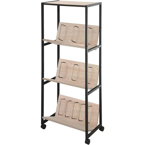ファイルラック 斜め キャスター付き (オーク/ブラックフレーム) 4段 ハイタイプ ファイルワゴン 本棚 収納棚 書類ラック A4 幅56cm 奥行31.5cm スリム スチールラック ファイル収納 ファイルボックス ファイルスタンド ファイルケース ファイル 書類 収納 オフィス収納 送料無料