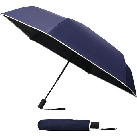 Ombrage 日傘 折りたたみ (エッジライン/ネイビー) 完全遮光 軽量 親骨55cm ワンタッチ 自動開閉 UVカット100% 大きめ 遮光 遮熱 遮蔽 晴雨兼用 UPF50+ 超撥水 傘 コンパクト おしゃれ カサ 折りたたみ傘 折り畳み 男性 女性 婦人 メンズ レディース 送料無料