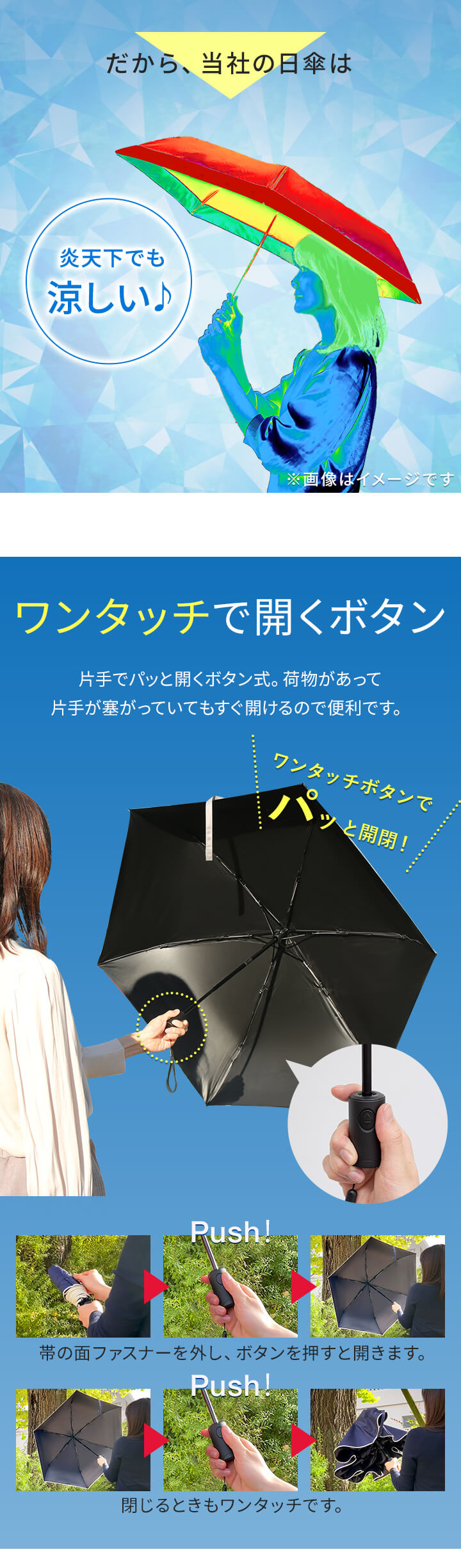 | 特記事項: ※商品の布地には撥水加工を施しておりますが、激しい雨の際は、 雨水が傘生地にしみる事があります、ご了承ください。 また強風時は破損する恐れがありますので使用をお控えください。 ※雨天時の使用後は傘を広げて十分に湿気を取り除いてください。 湿ったまま保管しますと、金属部分の錆の原因となります。 |