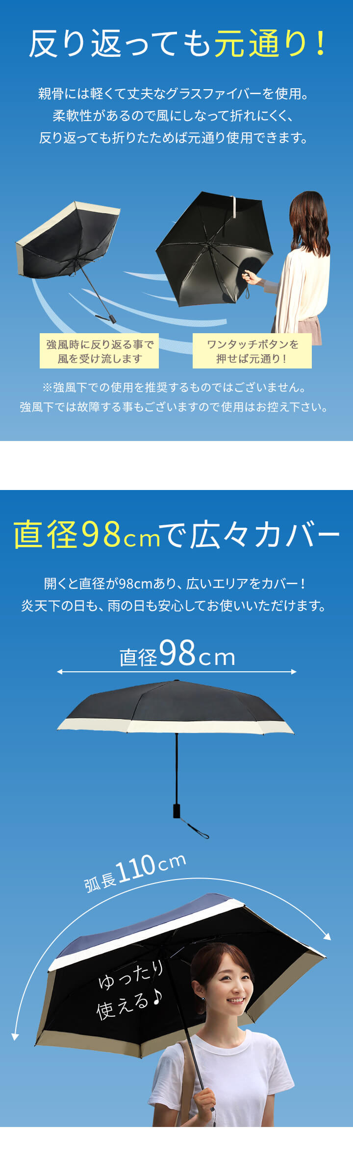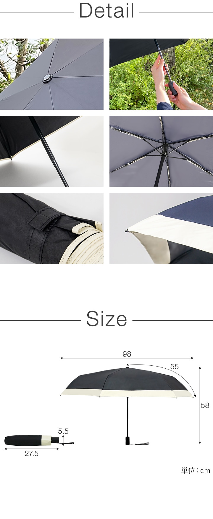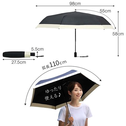 | サイズ: 親骨:(約)55cm 収納時:(約)27.5×5.5cm 使用時:(約)直径98cm 長さ58cm |