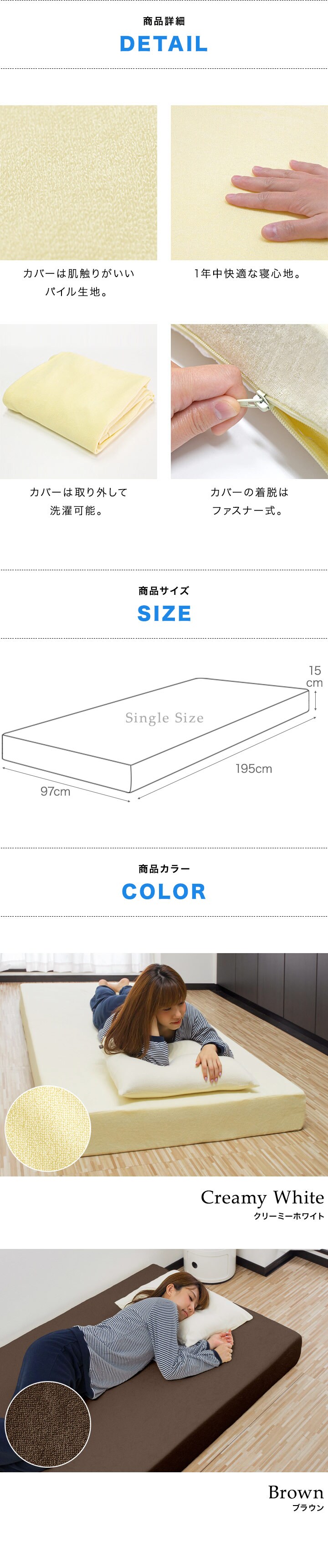 | サイズ: (約)195cm×97cm×15cm シングルサイズ |