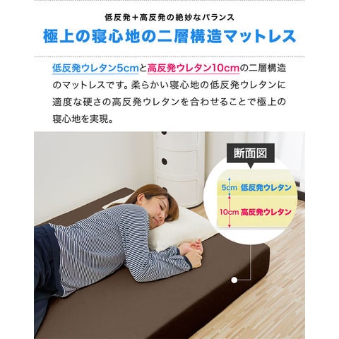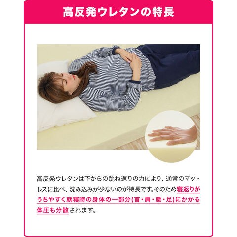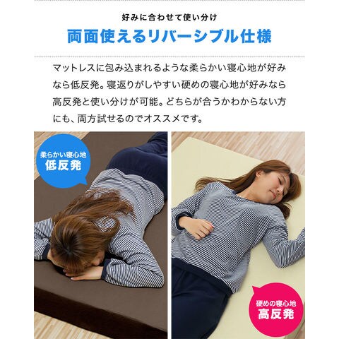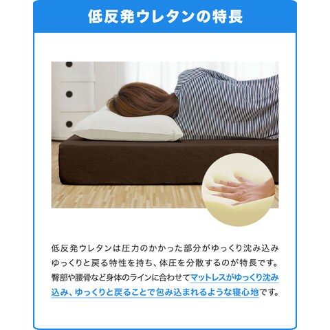 | 材質: マットレス本体:低反発ポリウレタン(密度45kg/m3) / 高反発ポリウレタン(密度25kg/m3) カバー:ポリエステル100% |