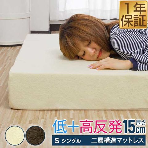 マットレス 低反発&高反発 両面 (シングル/ブラウン) 二層 マットレス 15cm 極厚 硬め 180N 低反発マットレス 高反発マットレス 低反発ウレタン 高反発ウレタン 体圧分散 厚さ15cm S/SD/D 高反発マット 洗えるカバー マット ベッド 寝具 送料無料