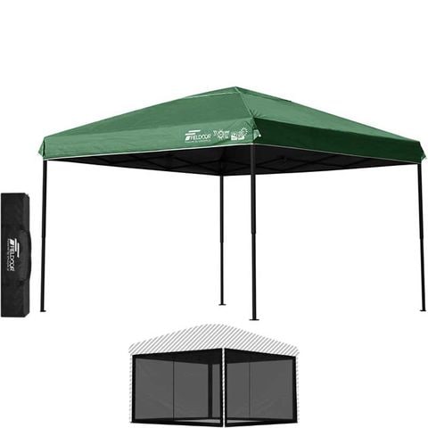 FIELDOOR ワンタッチタープテント 3m (遮光遮熱PU:グリーン/スチール/4点脚ロック/Bバグガード付) 頑丈 テント タープ 300 3.0m ワンタッチテント ワンタッチタープ ワンタッチ 大型 簡単 UVカット 撥水 日よけ プール イベント アウトドア キャンプ BBQ 送料無料