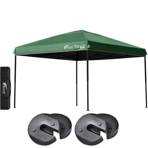 FIELDOOR ワンタッチタープテント 3m (遮光遮熱PU:グリーン/スチール/4点脚ロック/Dウエイト4点付) 頑丈 テント タープ 300 3.0m ワンタッチテント ワンタッチタープ ワンタッチ 大型 簡単 UVカット 撥水 日よけ プール イベント アウトドア キャンプ BBQ 送料無料
